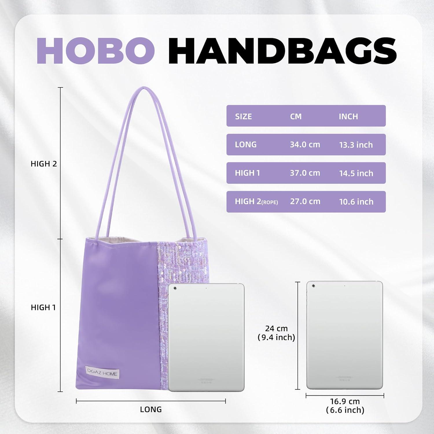 Score big savings on DGAZ Designer Hobo Bags for Women, Large Shoulder Bags, Luxury Tote Bag with Zipper(Lavender Sequins) during our back-to-school sale. Limited quantities available.