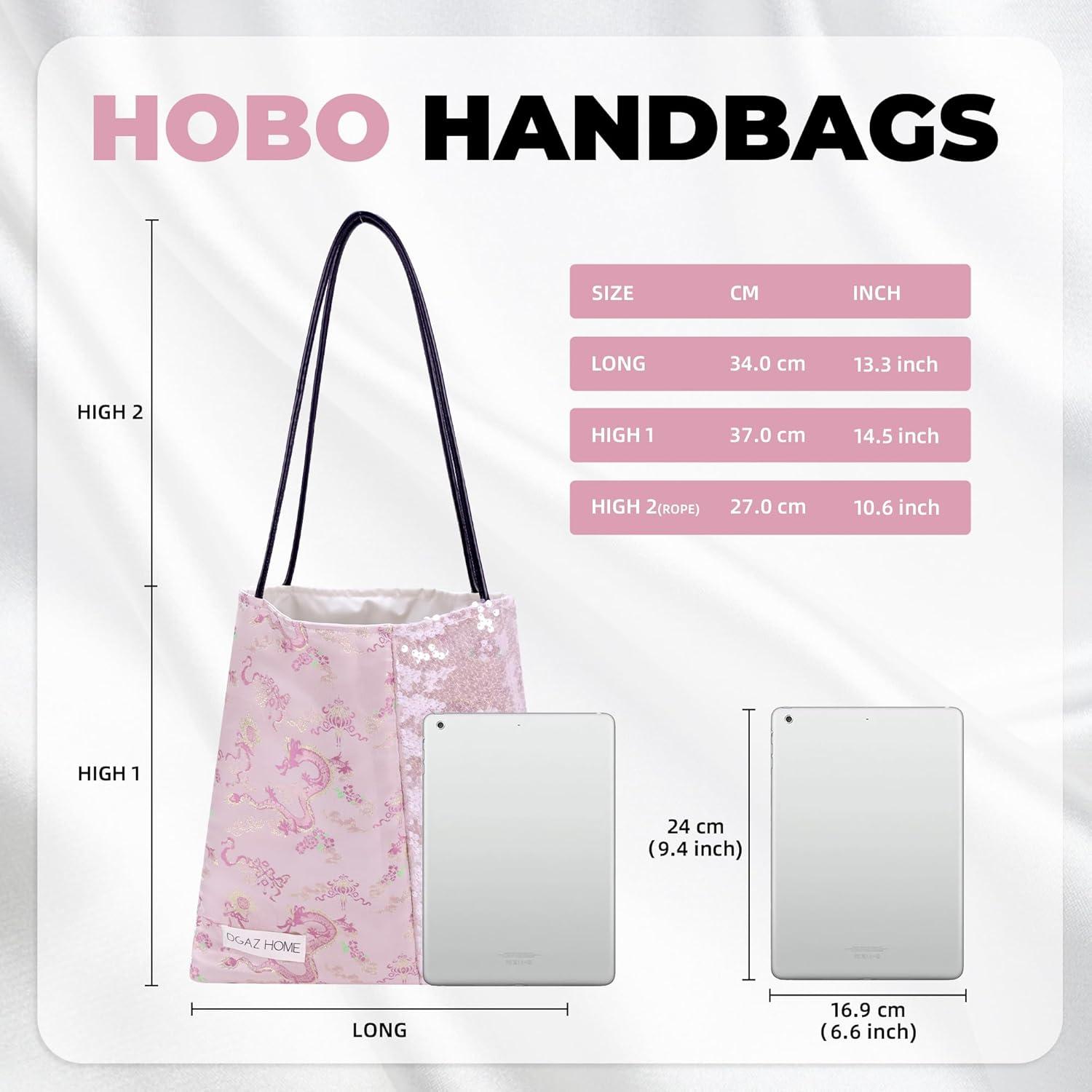 DGAZ Designer Hobo Bags for Women, Large Shoulder Bags, Luxury Tote Bag with Zipper(Pink Dragon)