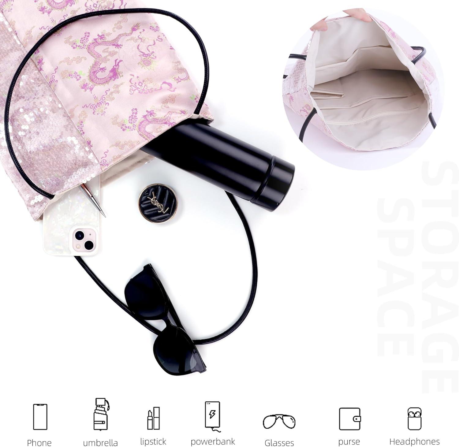 imageDGAZ Designer Hobo Bags for Women Large Shoulder Bags Luxury Tote Bag with ZipperPink Dragon