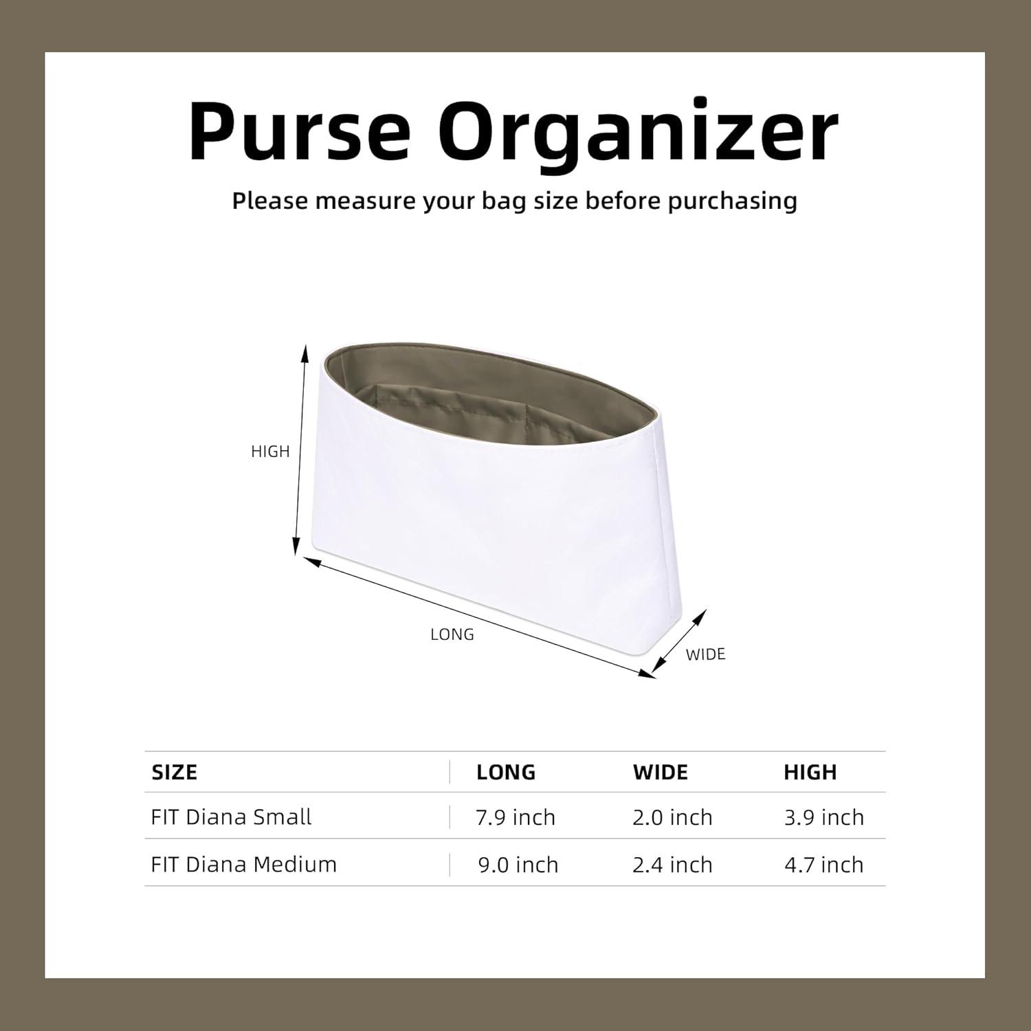 DGAZ Lightweight Purse Organizer Insert for Chanel Diana Bag,silk and DupontPaper handbag inner for Luxury Bags(Etoupe grey,Diana Small)