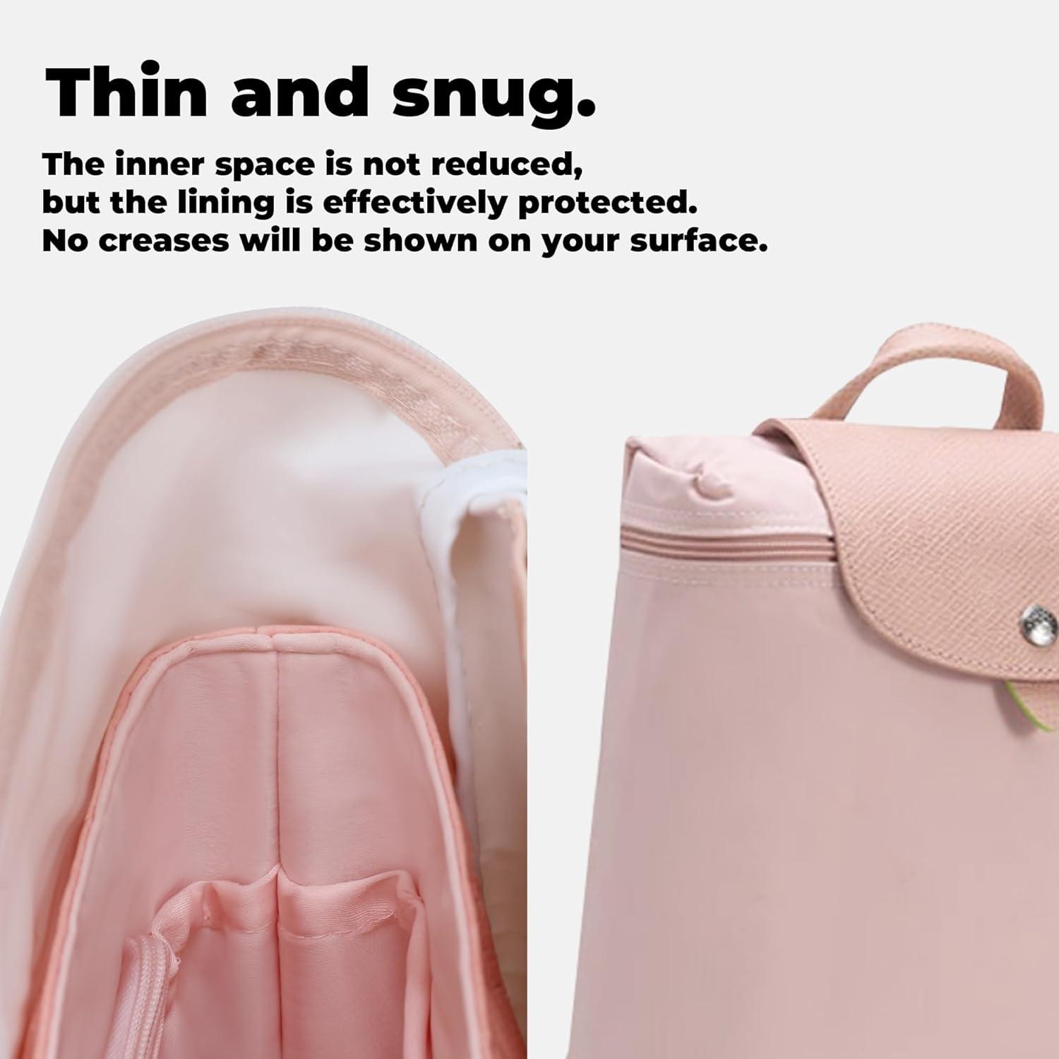 DGAZ Lightweight-Purse Organizer Insert for Longchamp Le Pliage Backpack Bag,silk and DupontPaper handbag inner for Luxury Bags(Le Pliage Original M Backpack,Black)(Pink)
