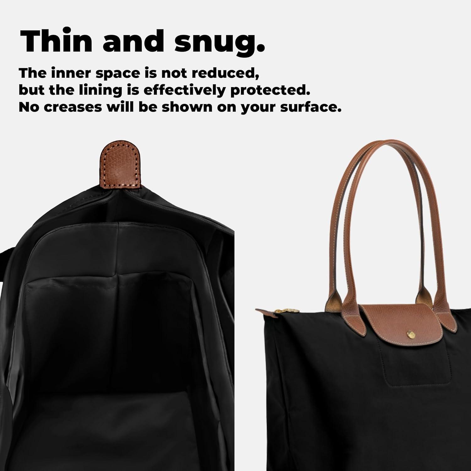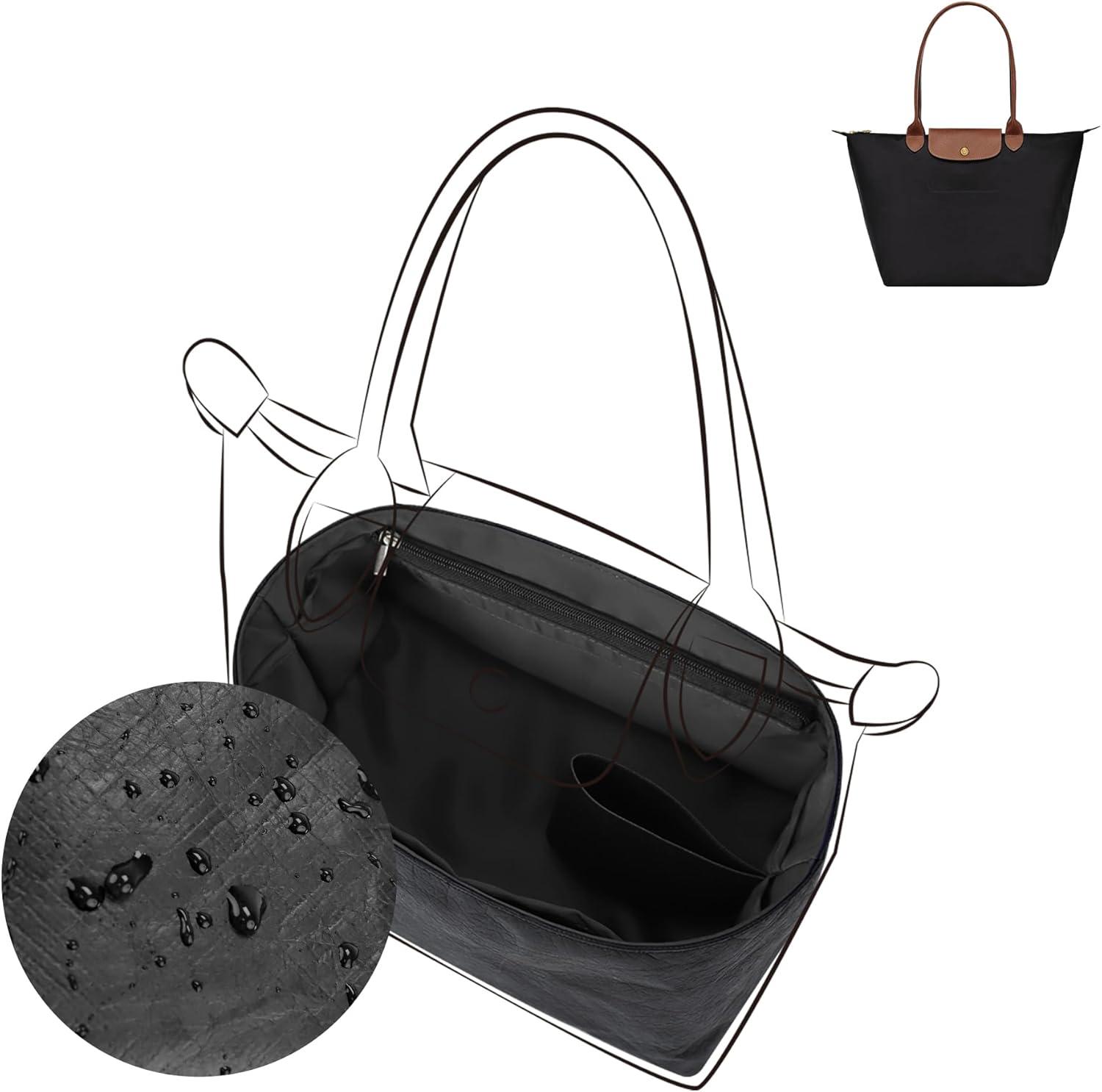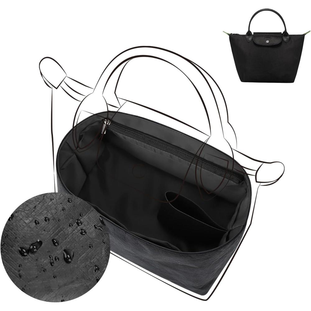 DGAZ Lightweight Purse Organizer Insert for Longchamp-Le Pliage Original Series Bag,silk and DupontPaper handbag inner for Luxury Bag(Black,LE PLIAGE S(Handle height: about 9 cm))(Black)