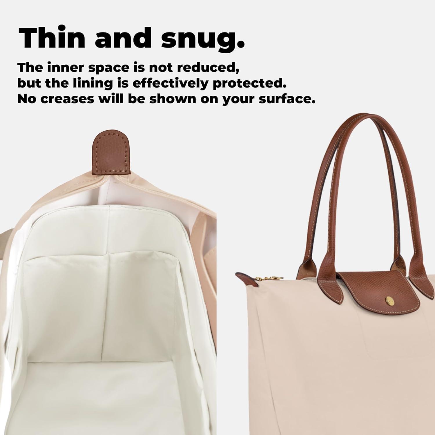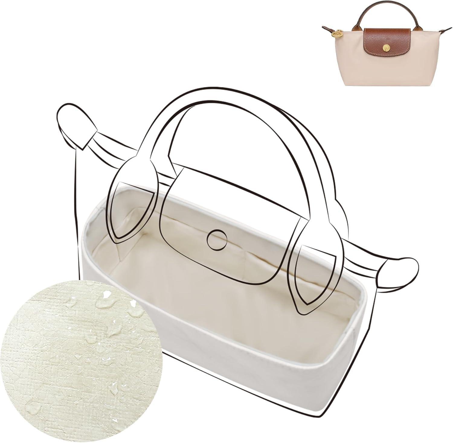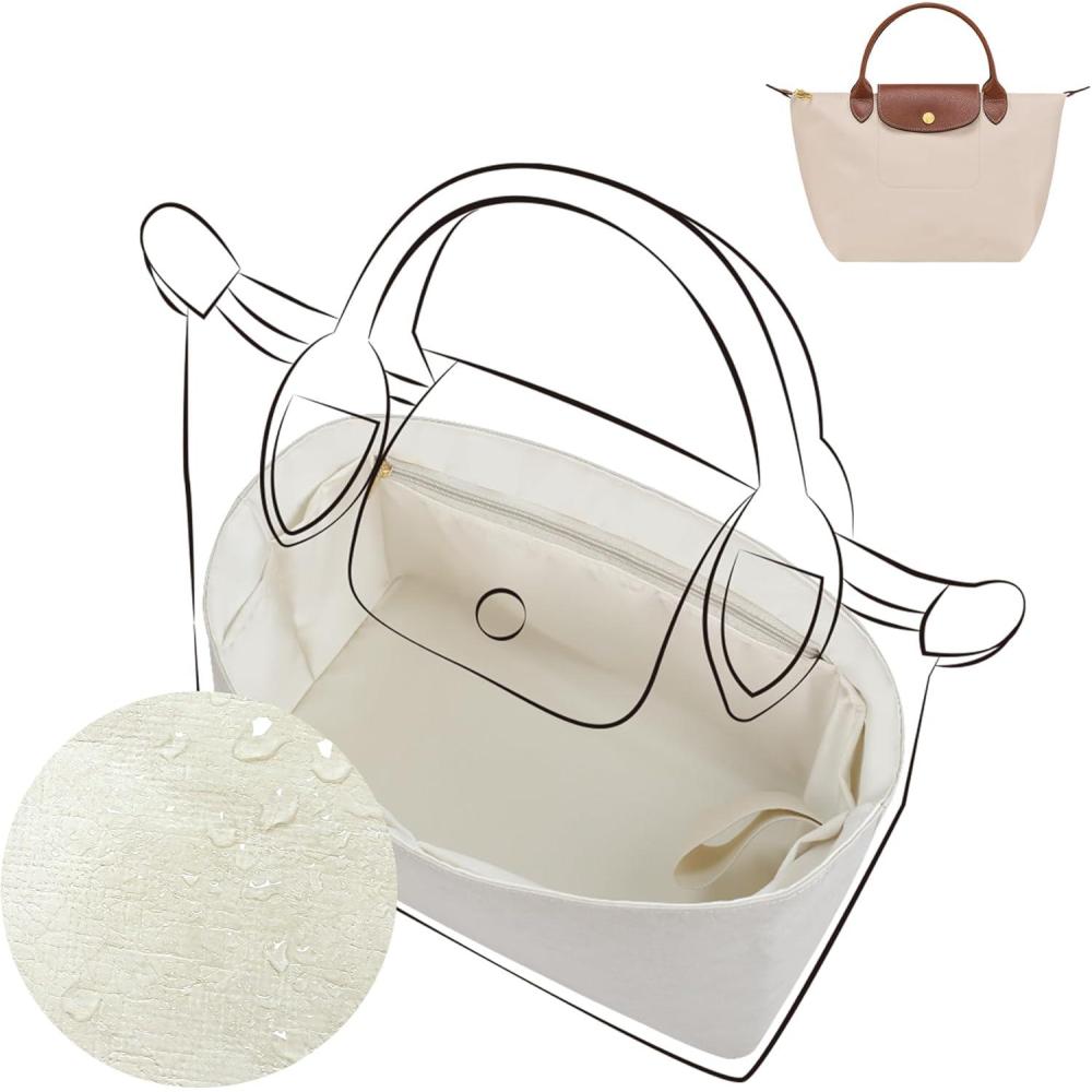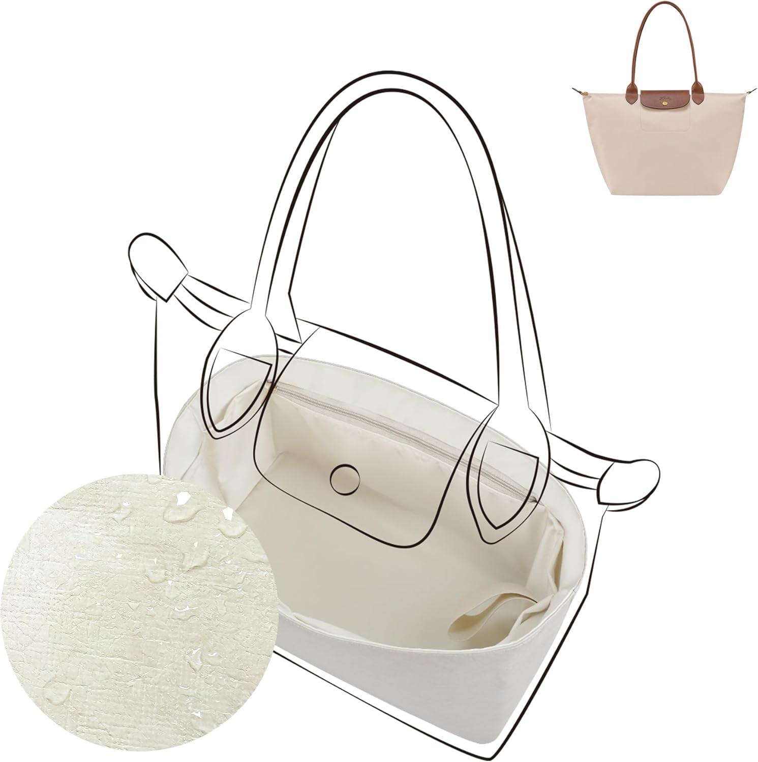 DGAZ Lightweight Purse Organizer Insert for Longchamp-Le Pliage Original Series Bag,silk and DupontPaper handbag inner for Luxury Bag(Black,LE PLIAGE S(Handle height: about 9 cm))(Craie)