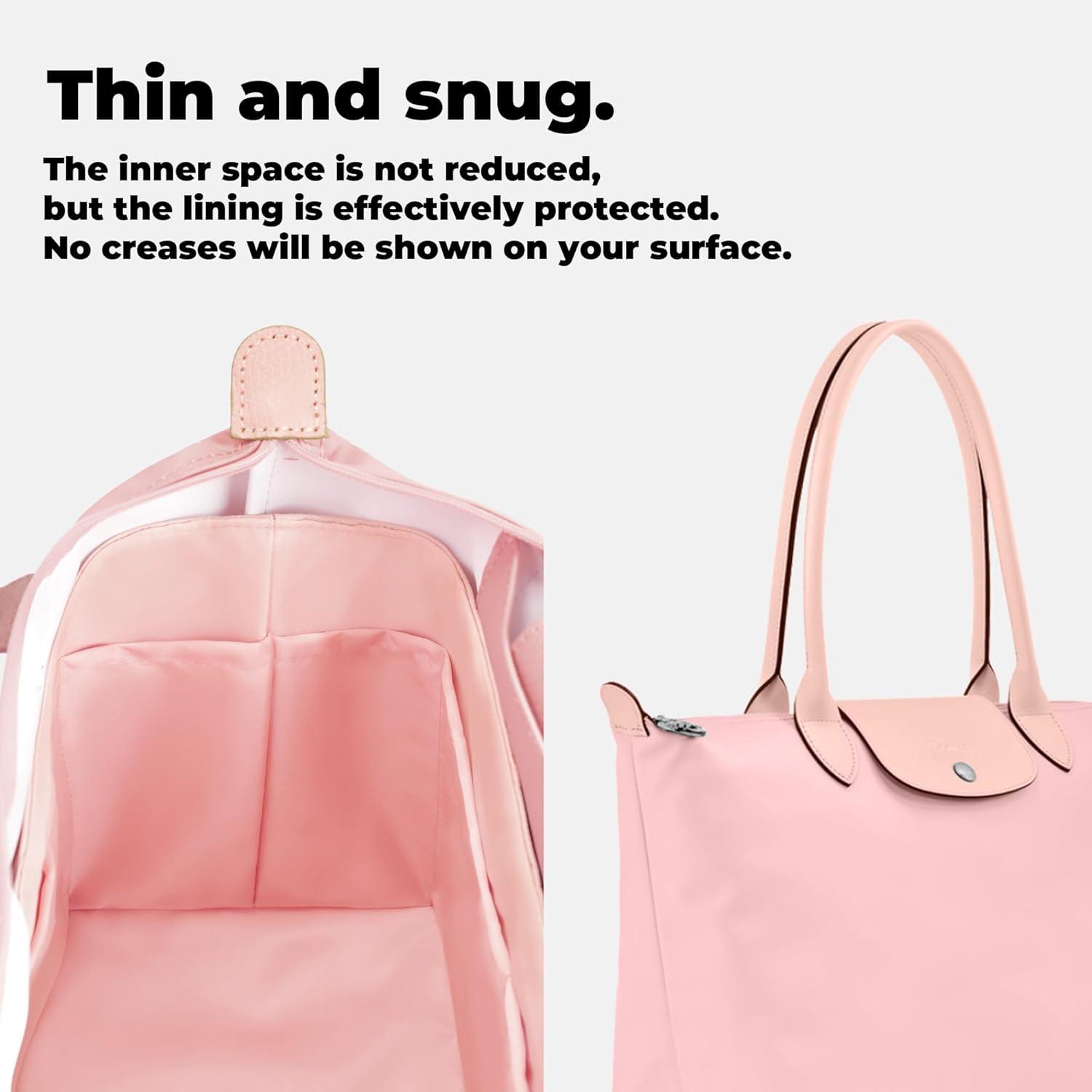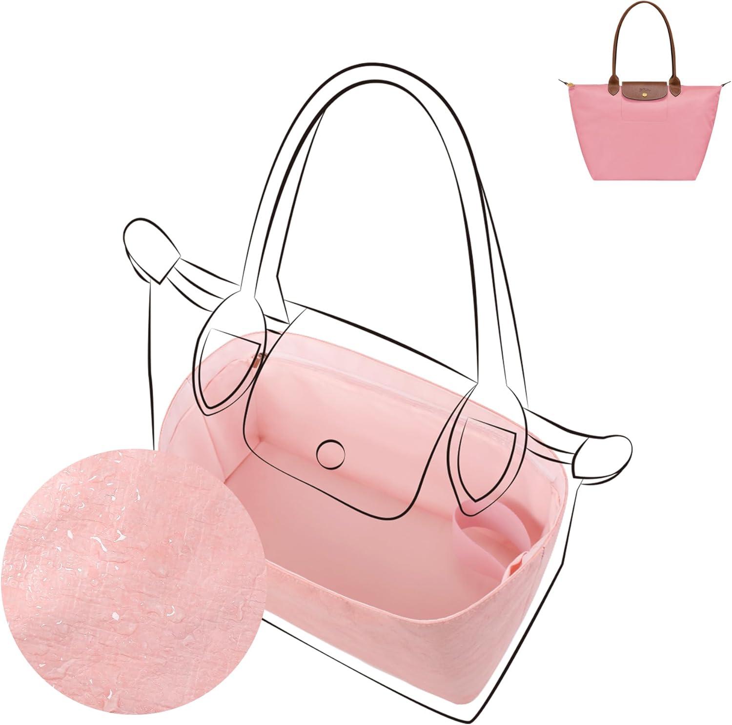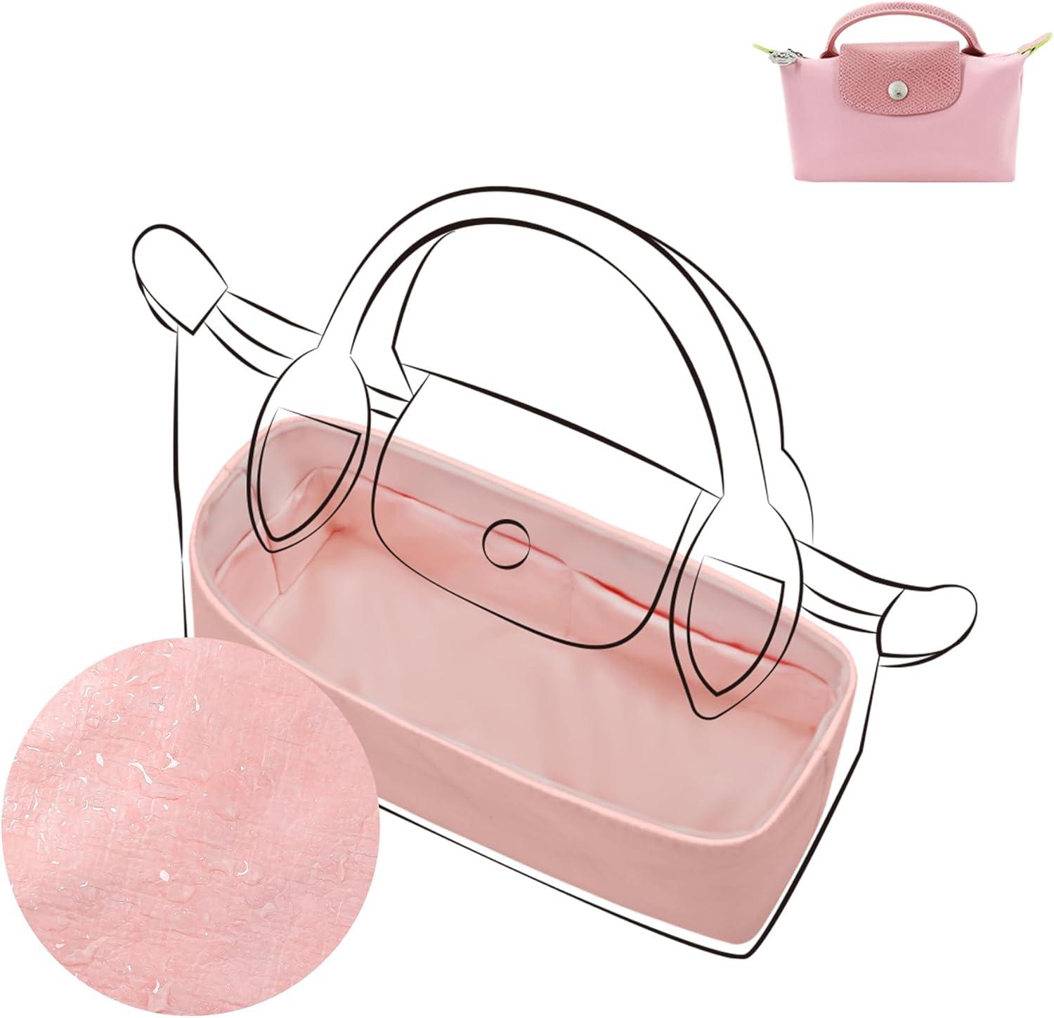 DGAZ Lightweight Purse Organizer Insert for Longchamp-Le Pliage Original Series Bag,silk and DupontPaper handbag inner for Luxury Bag(Black,LE PLIAGE S(Handle height: about 9 cm))(Pink)