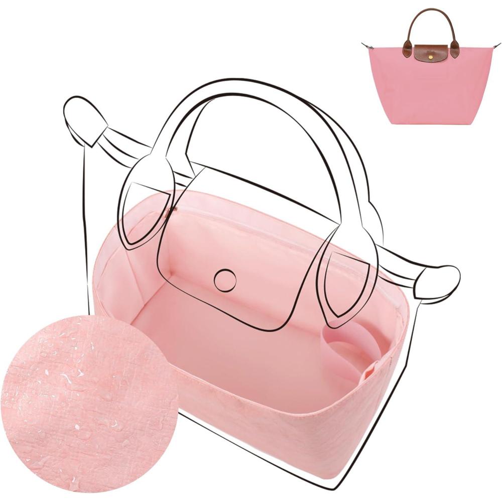 imageDGAZ Lightweight Purse Organizer Insert for LongchampLe Pliage Original Series Bagsilk and DupontPaper handbag inner for Luxury BagBlackLE PLIAGE SHandle height about 9 cmPink