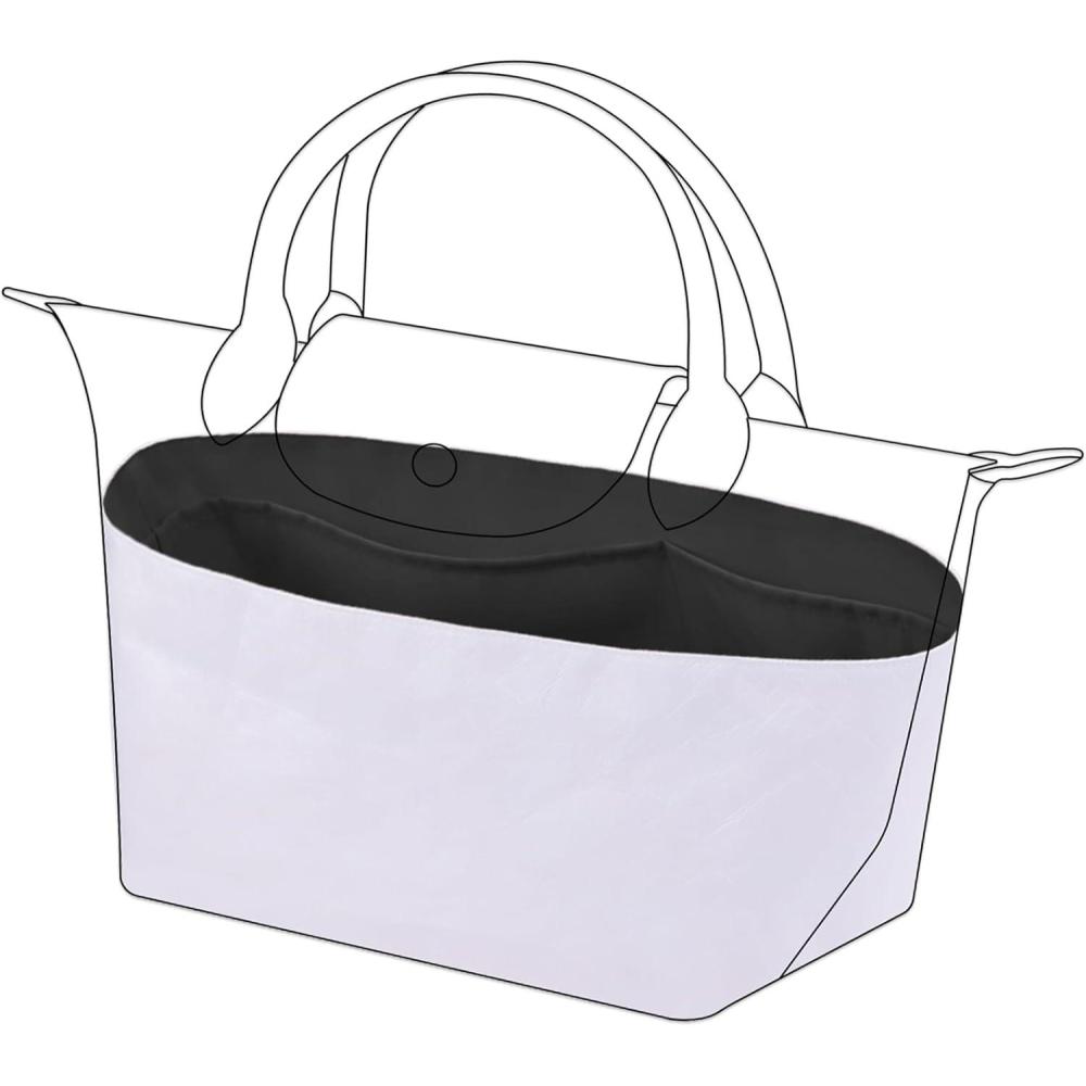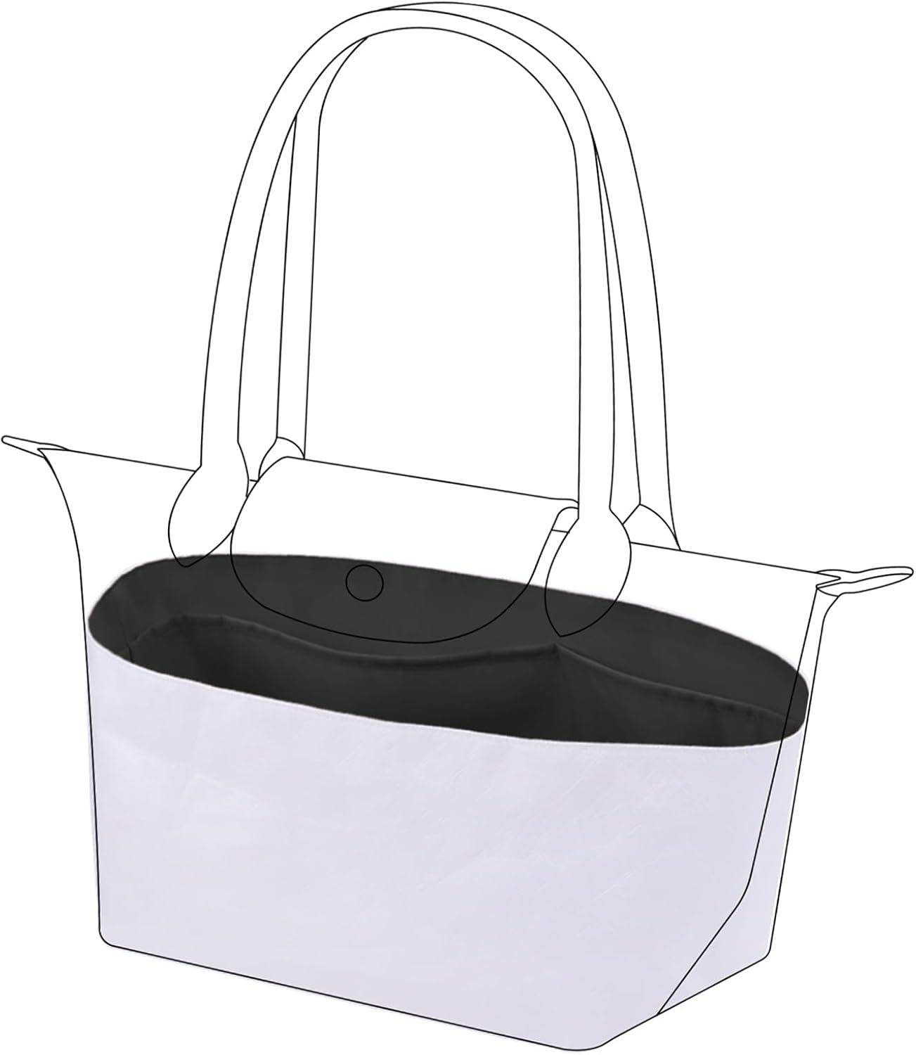 DGAZ Lightweight Purse Organizer Insert for Longchamp Le Pliage Original Series Bag,silk and DupontPaper handbag inner for Luxury Bags(Craie,LE PLIAGE L(Handle height: about 9 cm))(Black)