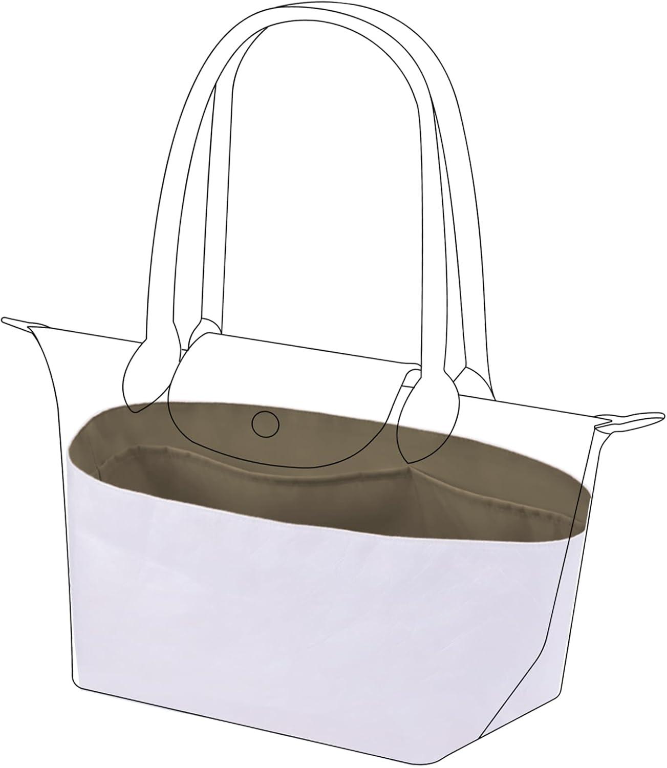 DGAZ Lightweight Purse Organizer Insert for Longchamp Le Pliage Original Series Bag,silk and DupontPaper handbag inner for Luxury Bags(Craie,LE PLIAGE L(Handle height: about 9 cm))(Etoupe grey)