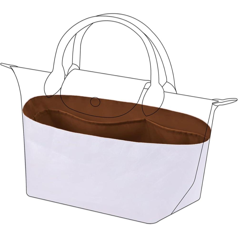 DGAZ Lightweight Purse Organizer Insert for Longchamp Le Pliage Original Series Bag,silk and DupontPaper handbag inner for Luxury Bags(Craie,LE PLIAGE L(Handle height: about 9 cm))(Etoupe grey)