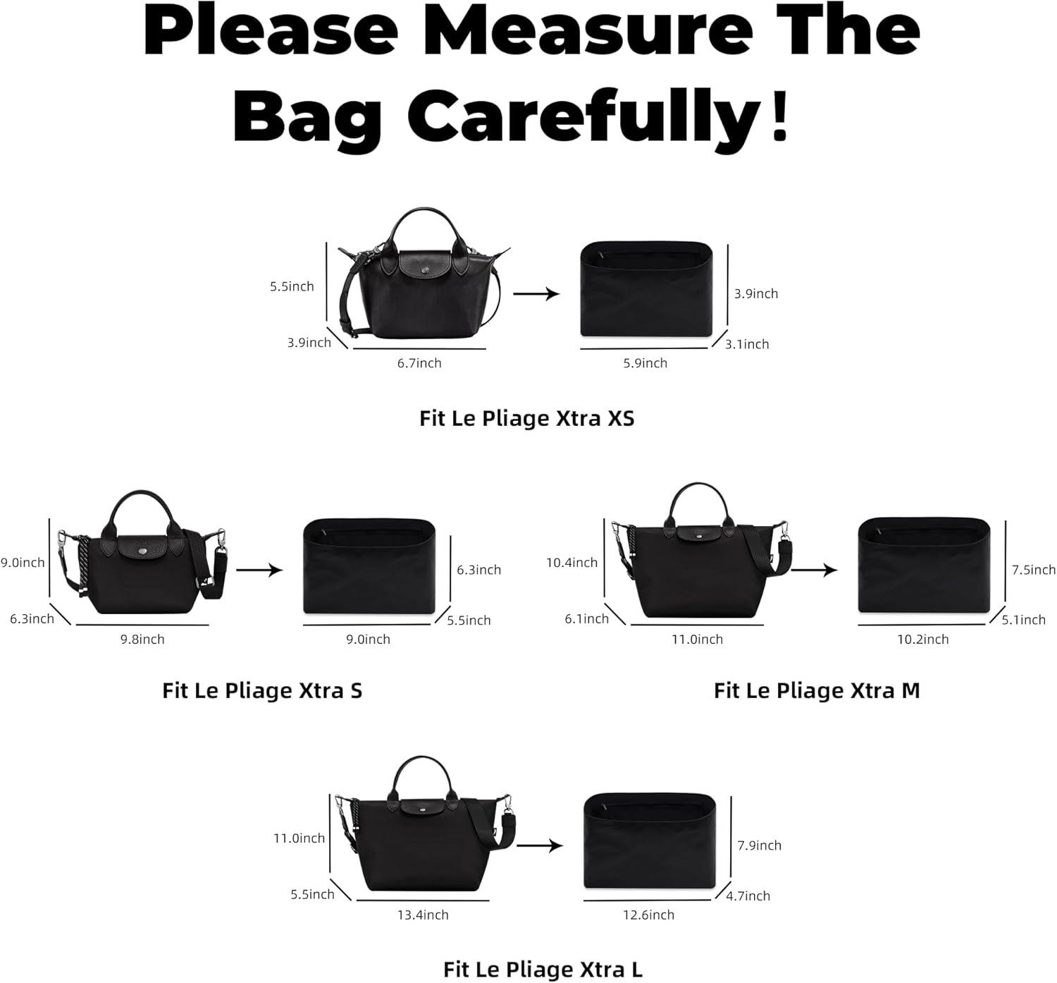 imageDGAZ Lightweight Purse Organizer Insert for LongchampLE PLIAGE Xtra Bagsilk and DupontPaper handbag inner for Luxury BagBlackLe Pliage Xtra XSBlack