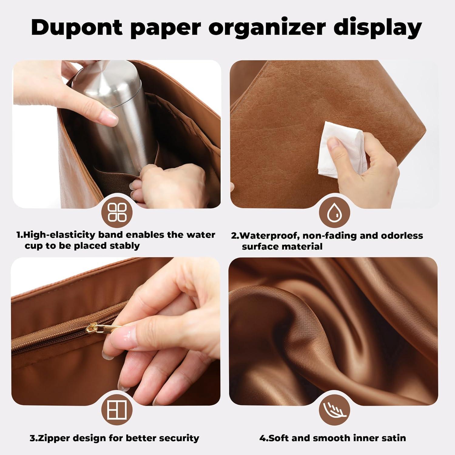Clever design: The exterior of the purse insert is made of high-grade waterproof DuPontpaper, which effectively makes the thickness thinner and fits the bag more closely when in use. Combined with multiple pockets, the interior space of the luxury bag is enhanced.