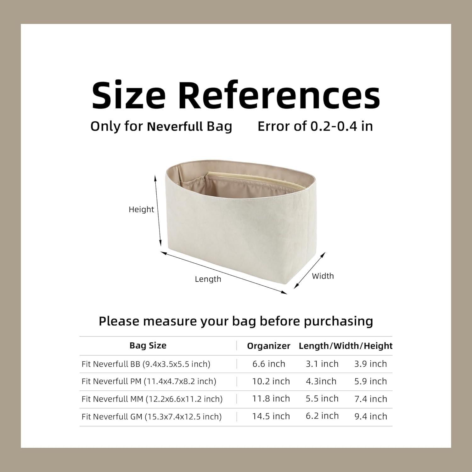 Purchase Notice: Please measure the internal dimensions of your handbag before purchasing, confirm the bag model, and then refer to the size chart for selection to avoid confusion caused by choosing the wrong size.
