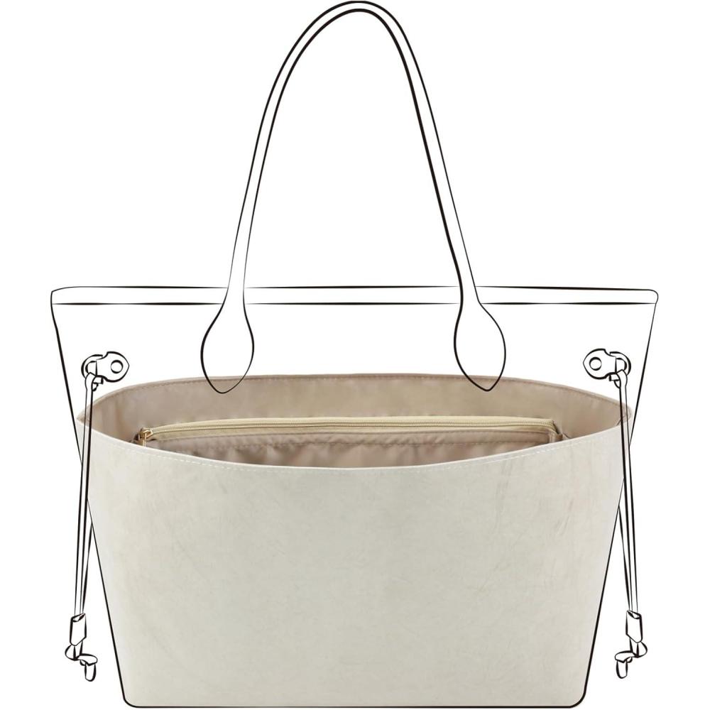 DGAZ Lightweight Purse Organizer Insert for Neverfull Bags,silk and DupontPaper handbag inner for Luxury Bag(PM,Black)(Craie)