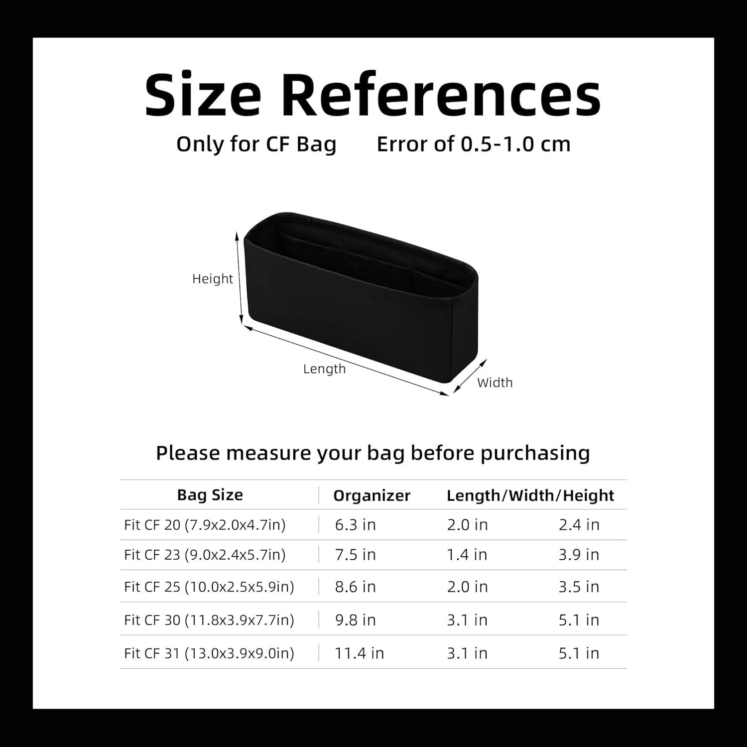 DGAZ Purse Organizer Insert,Silk Bag Organizer,Luxury Handbag & Tote Shaper Fits Chanel CF Bags(Black)