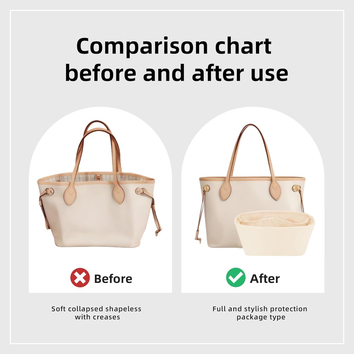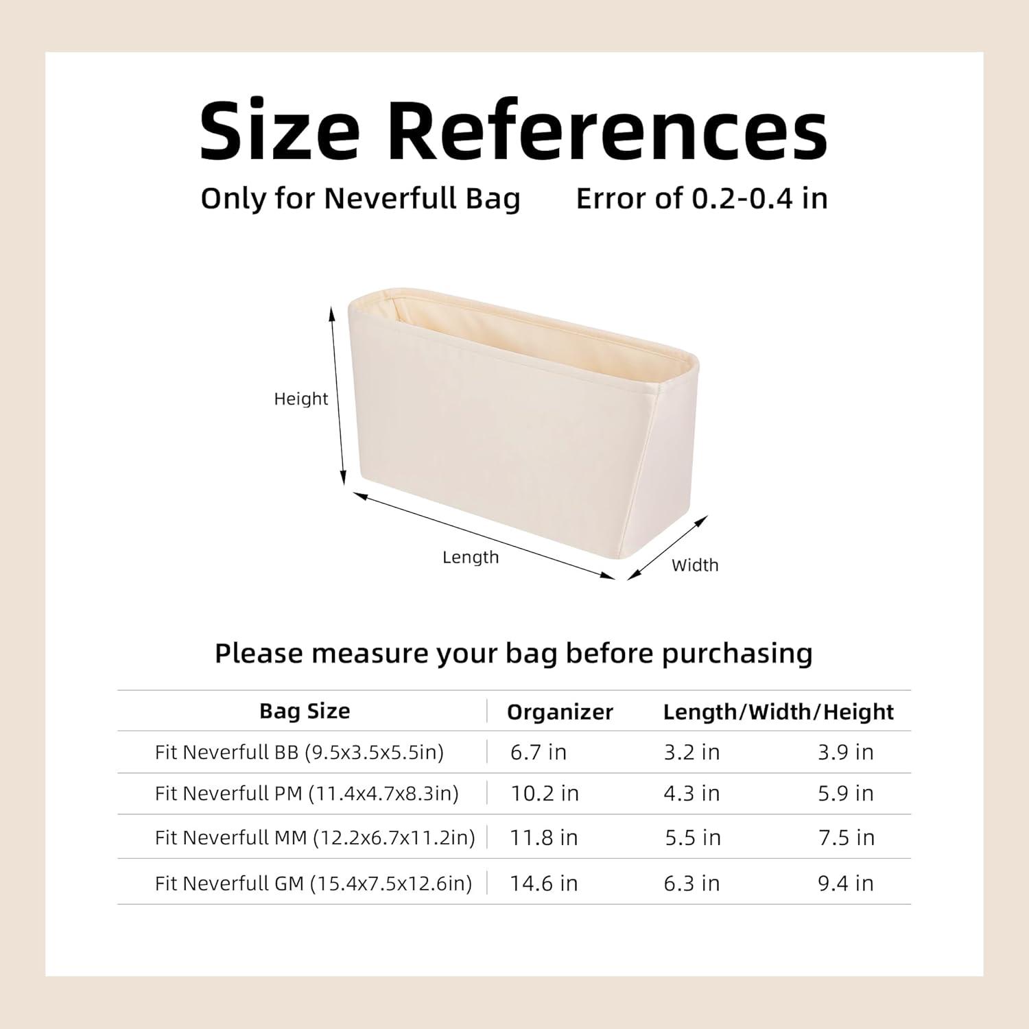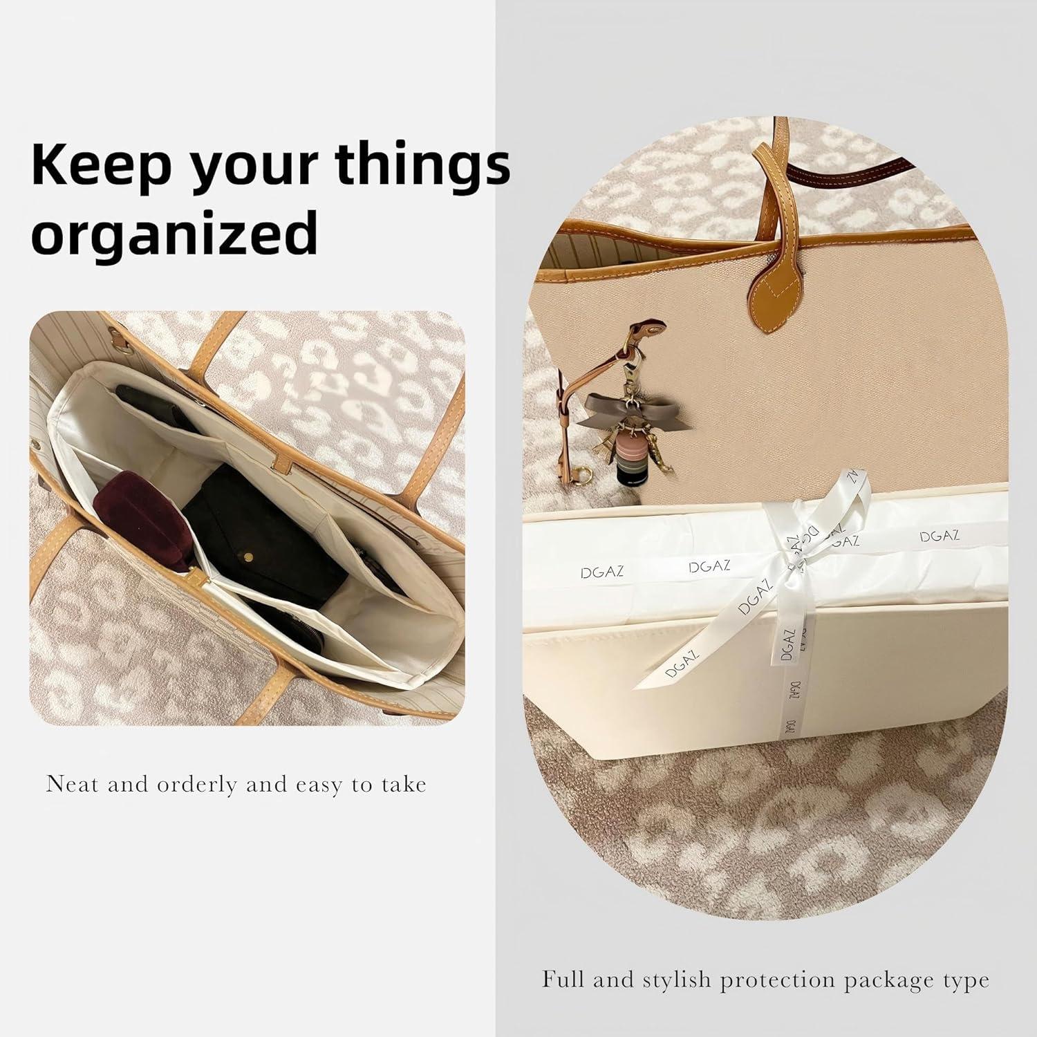 DGAZ Purse Organizer Insert Fits Neverfull-Mini/PM/MM/GM Bags,Silk Bag Organizer,Luxury Handbag & Tote Shaper(MM, Rouge H)(Craie)