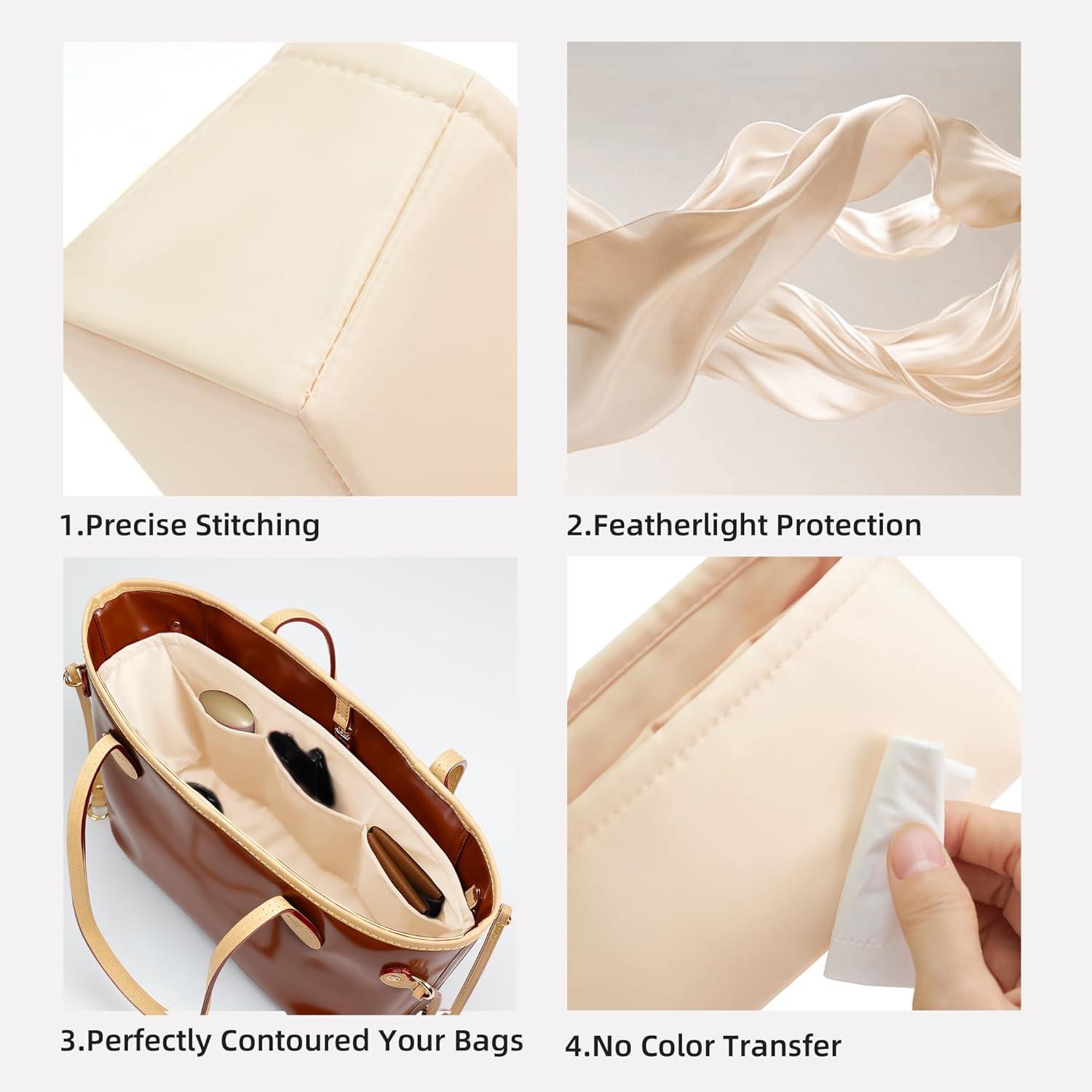High-grade material: our handbag organizer is made of high-grade silk, silky feel, lightweight, soft and firm, satin bag organizer can easily support the bag and does not leave traces; precious bag is the need for a matching partner, out of communication more highlight the consistent internal and external noble.