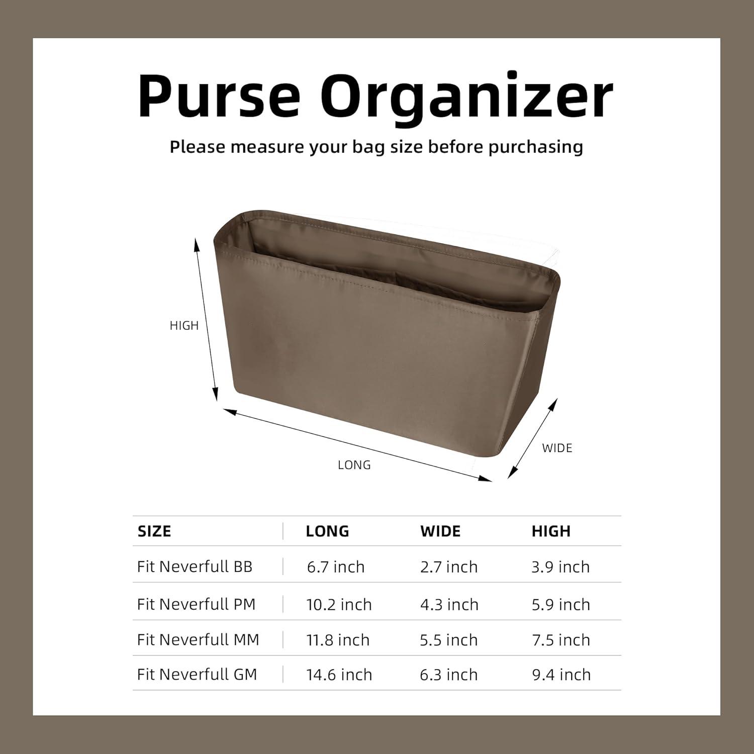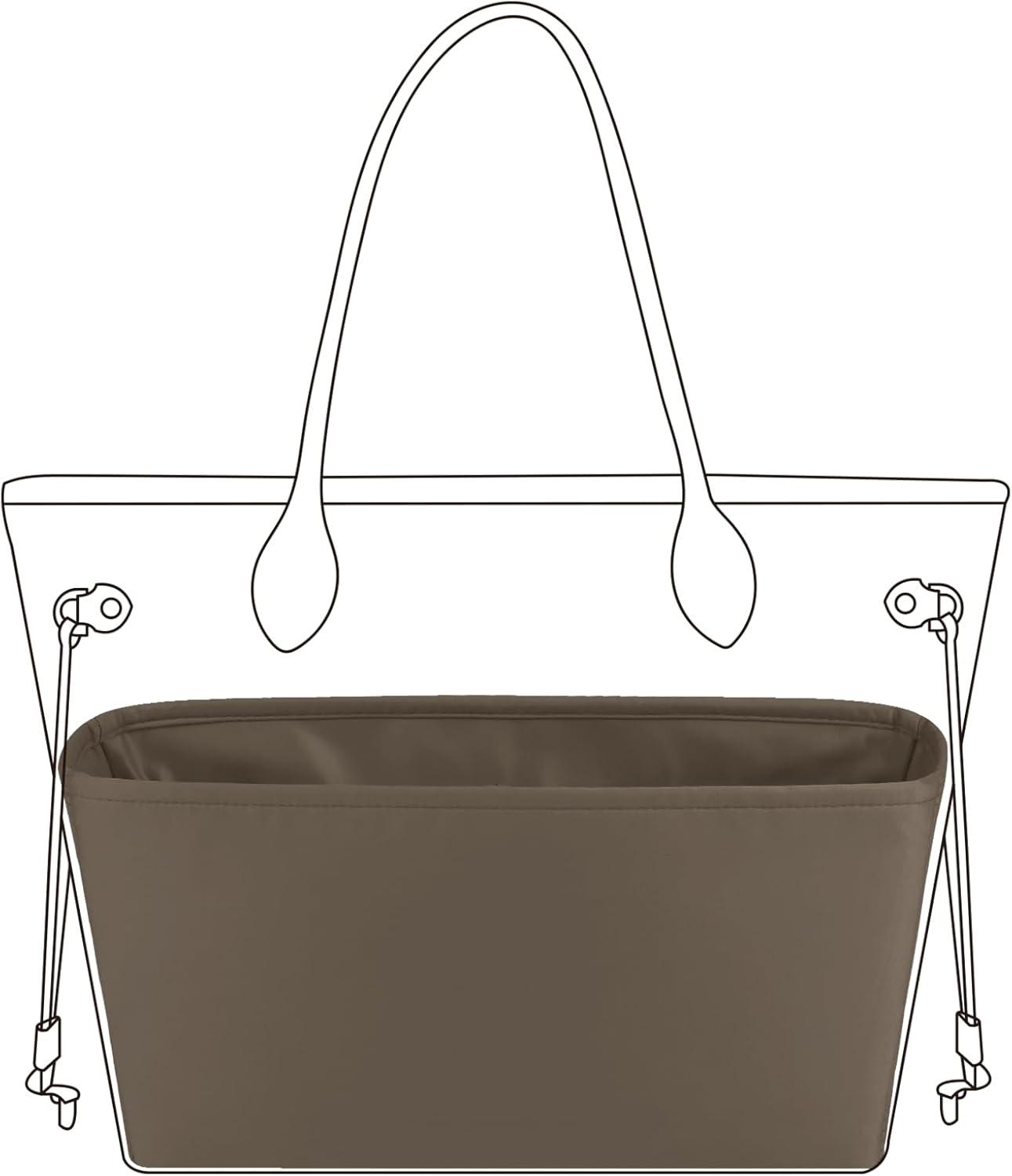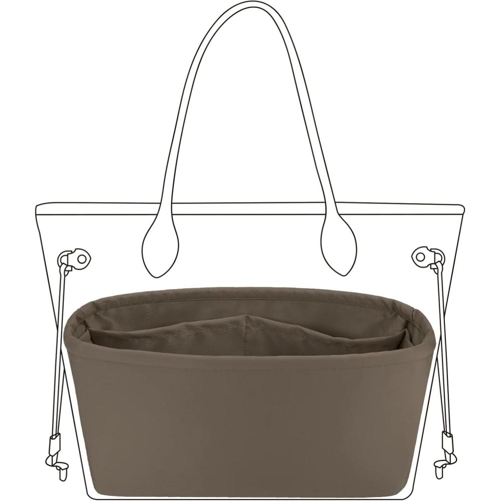 DGAZ Purse Organizer Insert Fits Neverfull-Mini/PM/MM/GM Bags,Silk Bag Organizer,Luxury Handbag & Tote Shaper(MM, Rouge H)(Etoupe grey)
