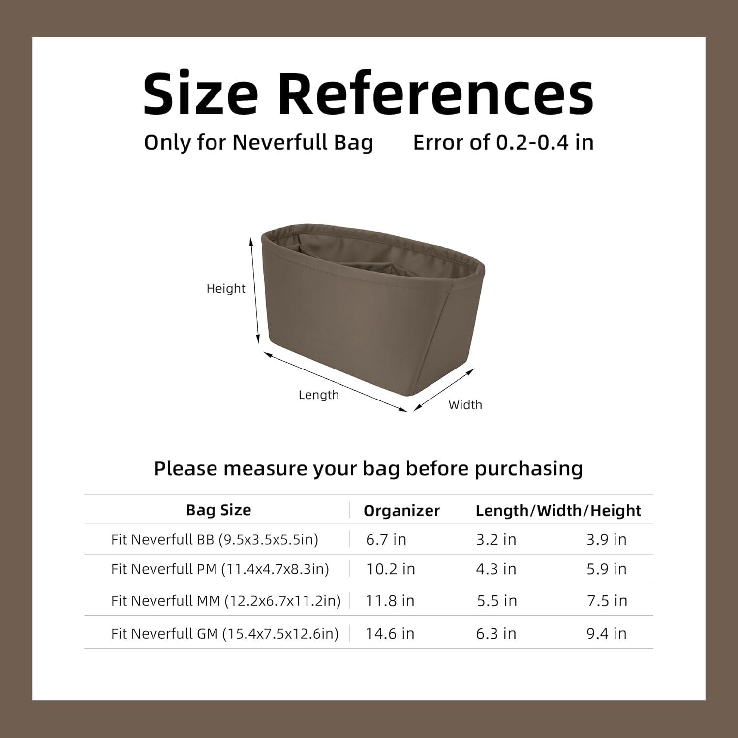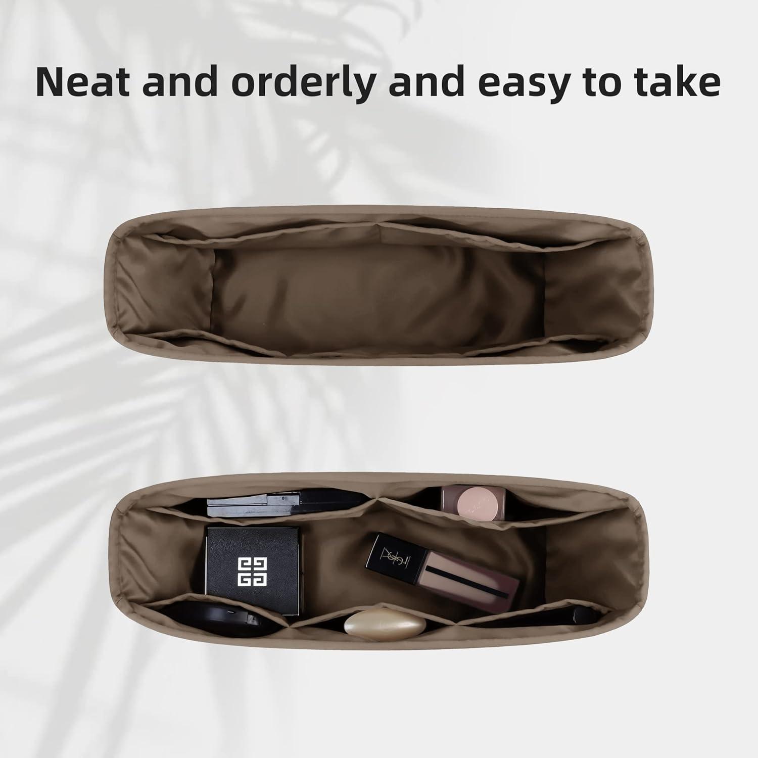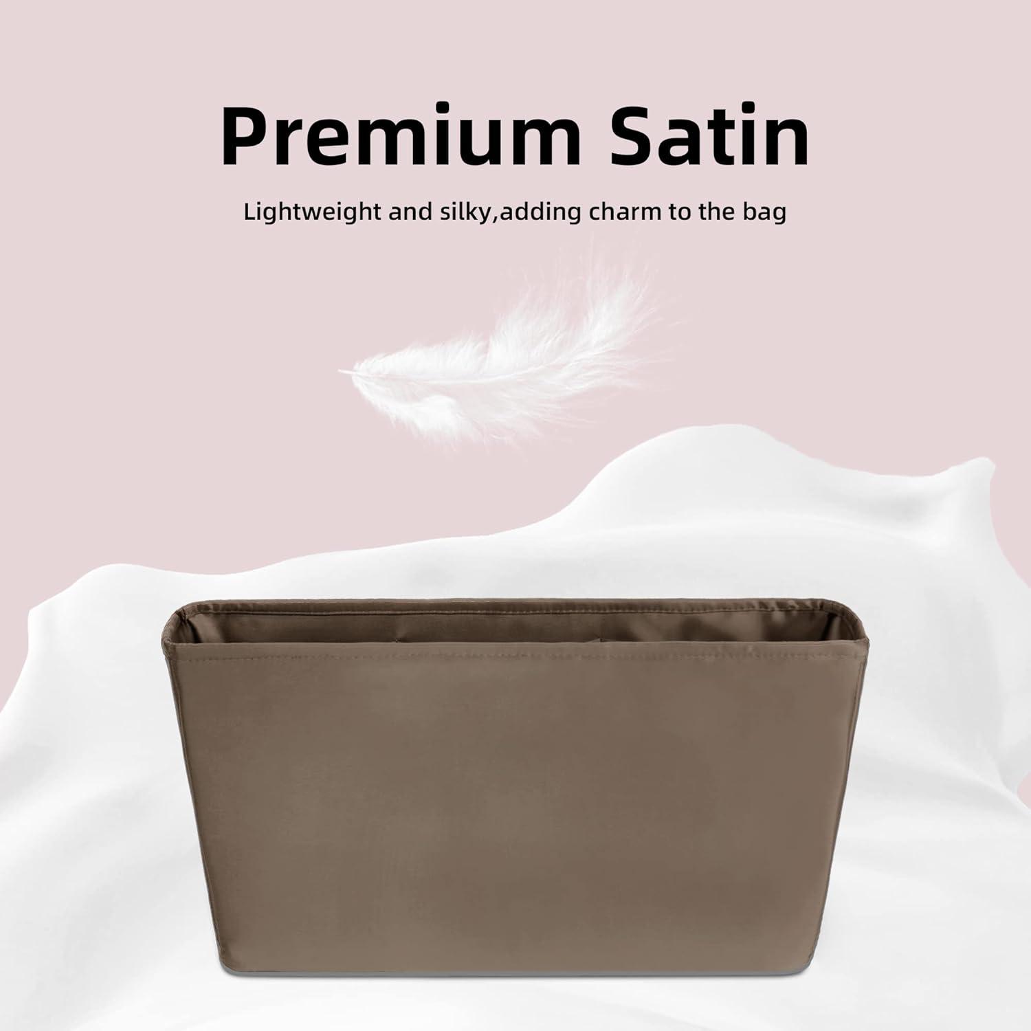 DGAZ Purse Organizer Insert Fits Neverfull-Mini/PM/MM/GM Bags,Silk Bag Organizer,Luxury Handbag & Tote Shaper(MM, Rouge H)(Etoupe grey)