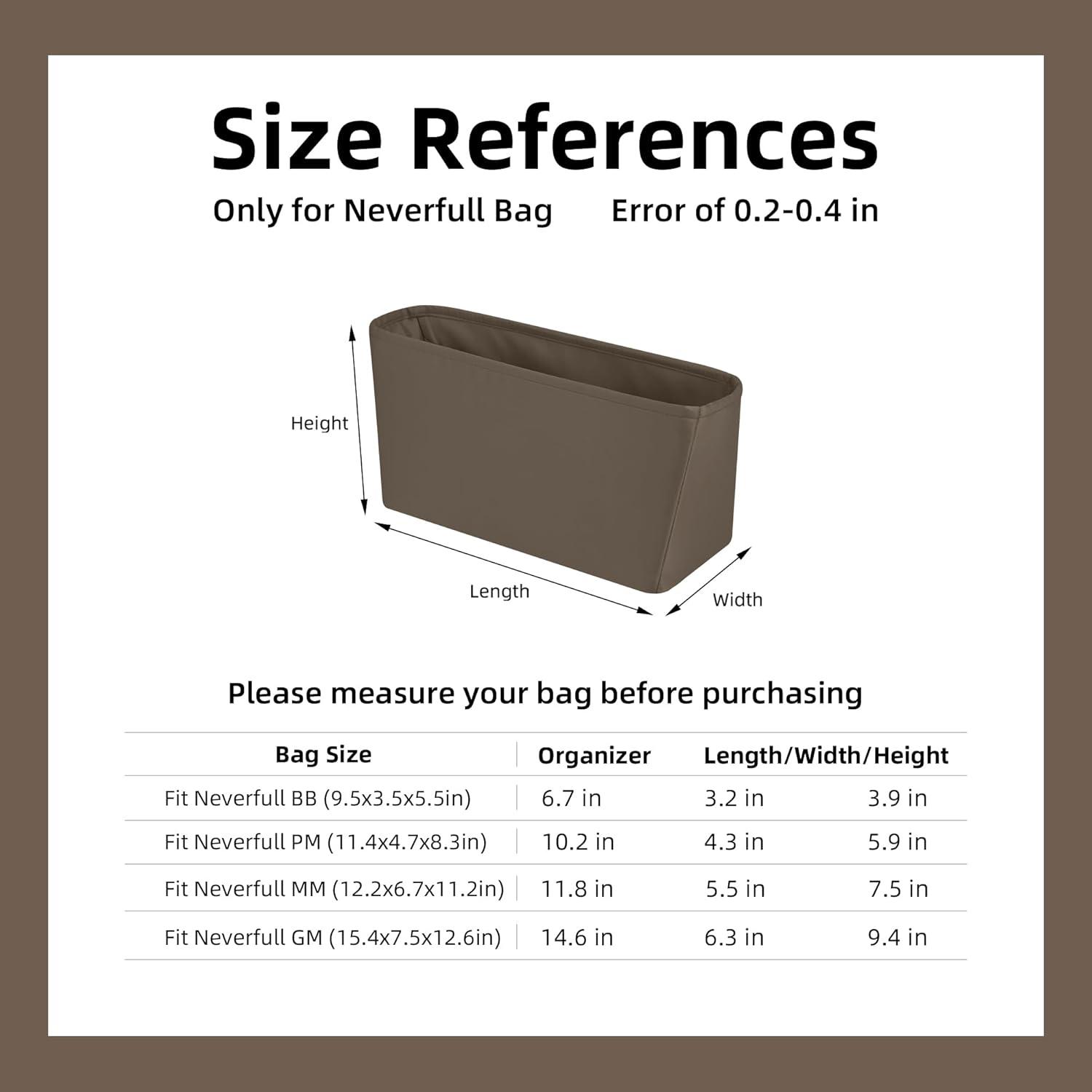 Exquisite handmade: DGAZ's purse organizer are handmade, focusing on the quality of each product, each size is exclusive to a style of bag, eliminating the trouble of choosing the size, please choose the appropriate style of bag when buying.