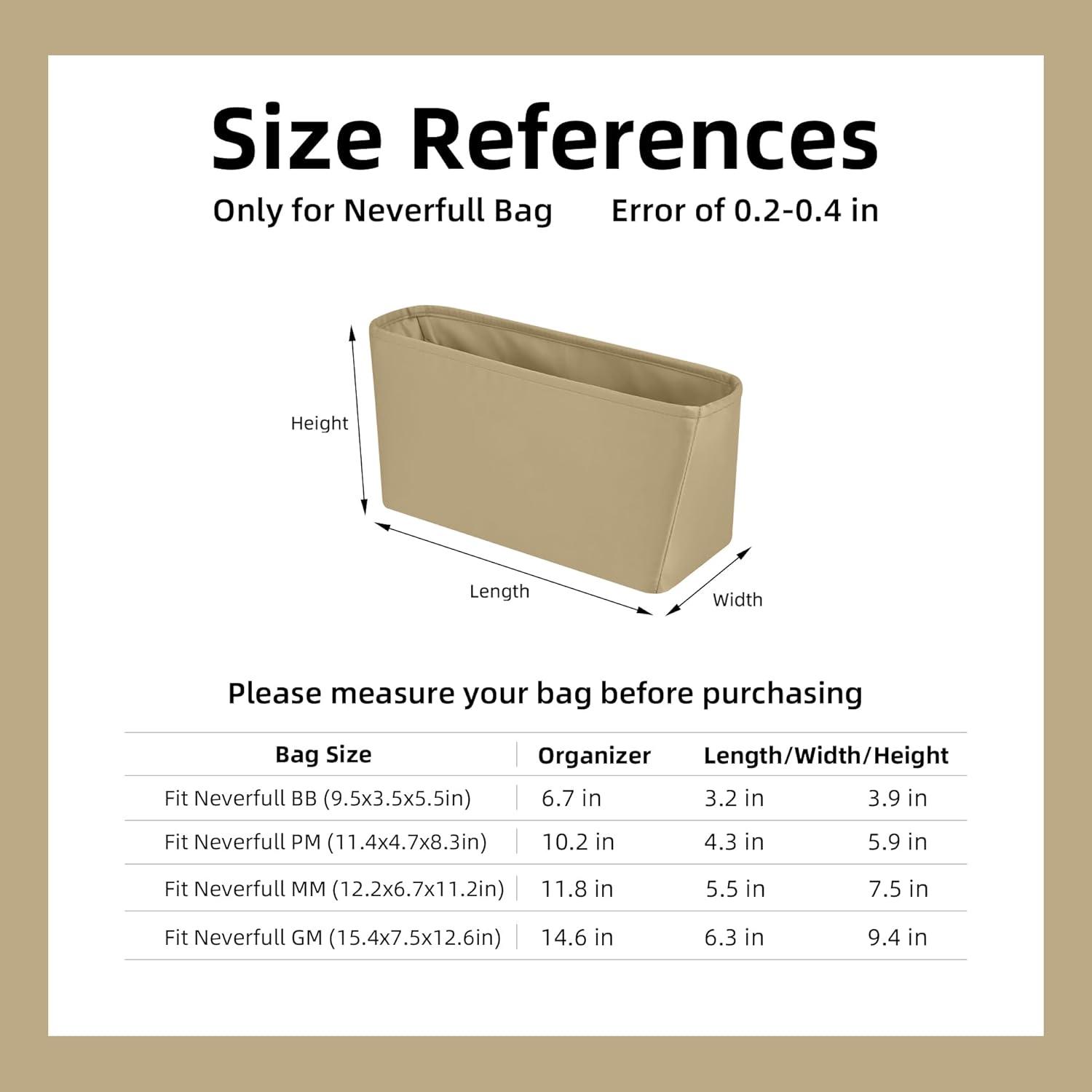 Exquisite handmade: DGAZ's purse organizer are handmade, focusing on the quality of each product, each size is exclusive to a style of bag, eliminating the trouble of choosing the size, please choose the appropriate style of bag when buying.
