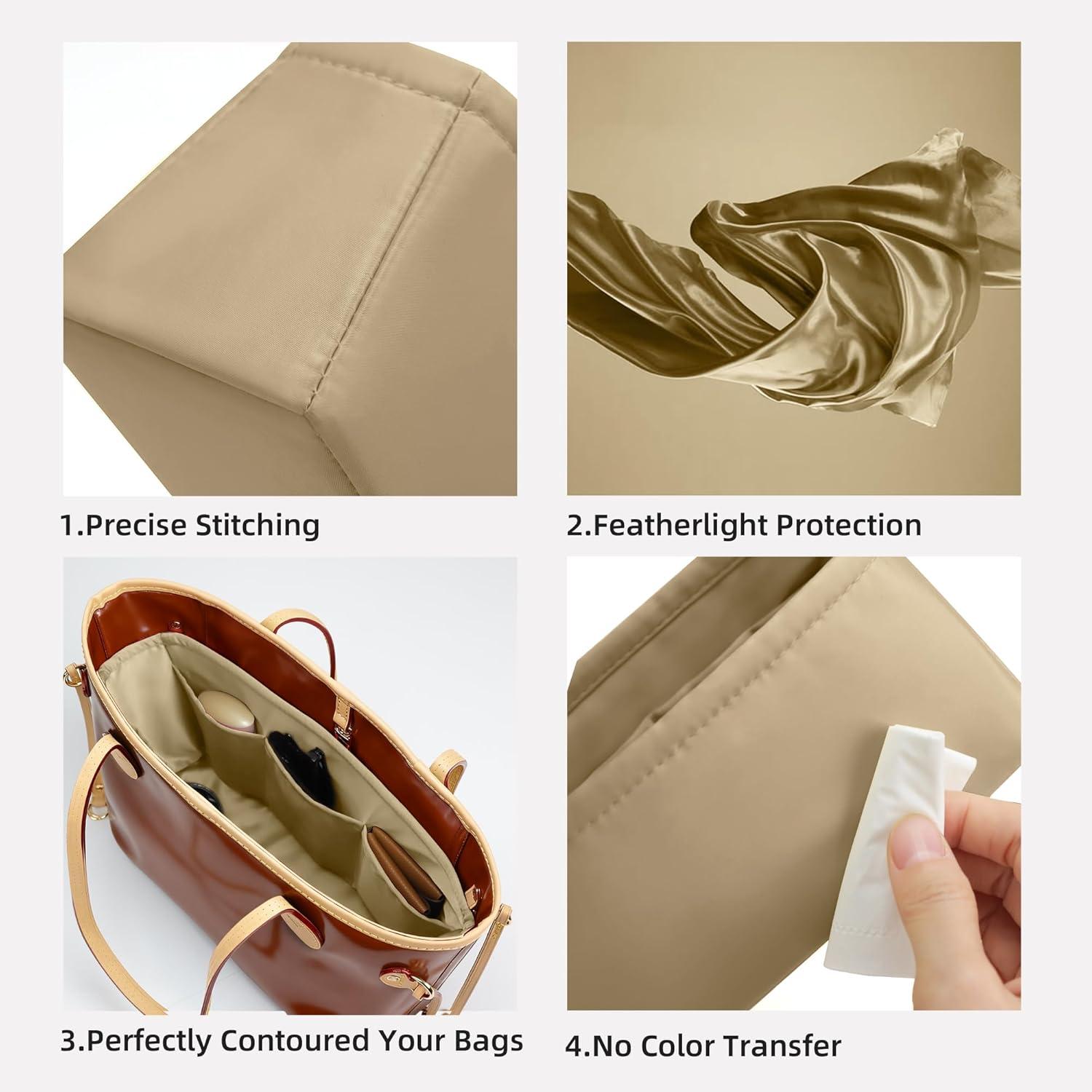 High-grade material: our handbag organizer is made of high-grade silk, silky feel, lightweight, soft and firm, satin bag organizer can easily support the bag and does not leave traces; precious bag is the need for a matching partner, out of communication more highlight the consistent internal and external noble.