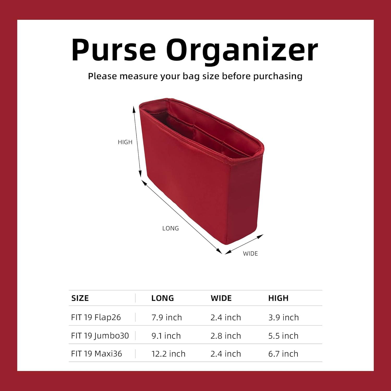 DGAZ Purse Organizer Insert for Chanel 19 Bags,Silk Bag Organizer,Luxury Handbag & Tote Shaper (Burgundy,19-Flap26)(Burgundy)
