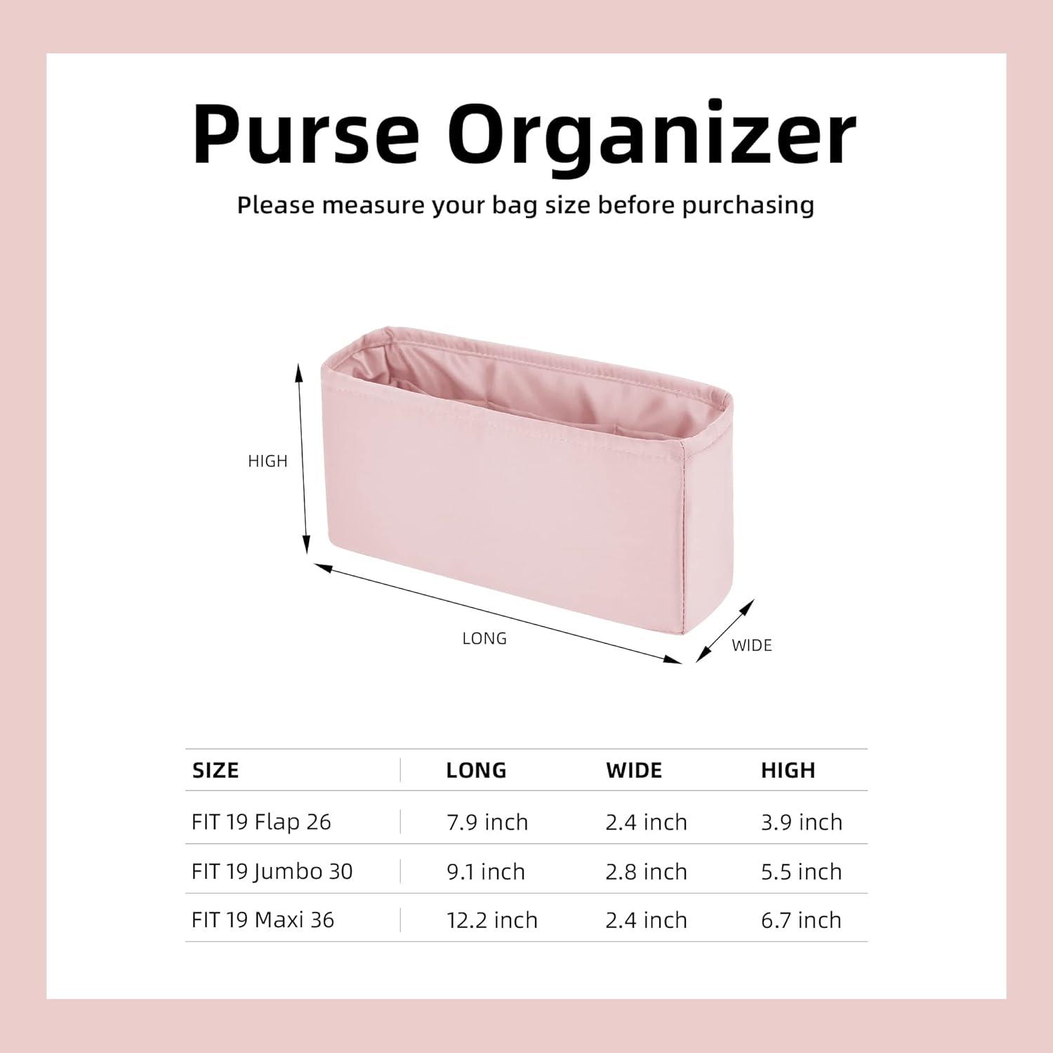 DGAZ Purse Organizer Insert for Chanel 19 Bags,Silk Bag Organizer,Luxury Handbag & Tote Shaper (Burgundy,19-Flap26)(Pink)
