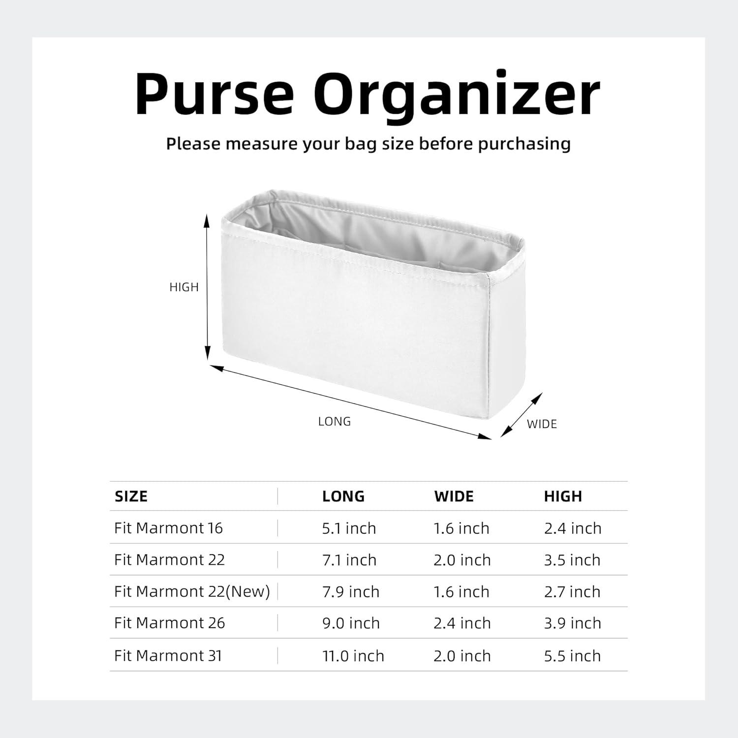 DGAZ Purse Organizer Silky Smooth For Gucci Marmont 16/22/26/31 Bags,Silk,Luxury Handbag Tote in Bag Shapers (Black, M31)(White)