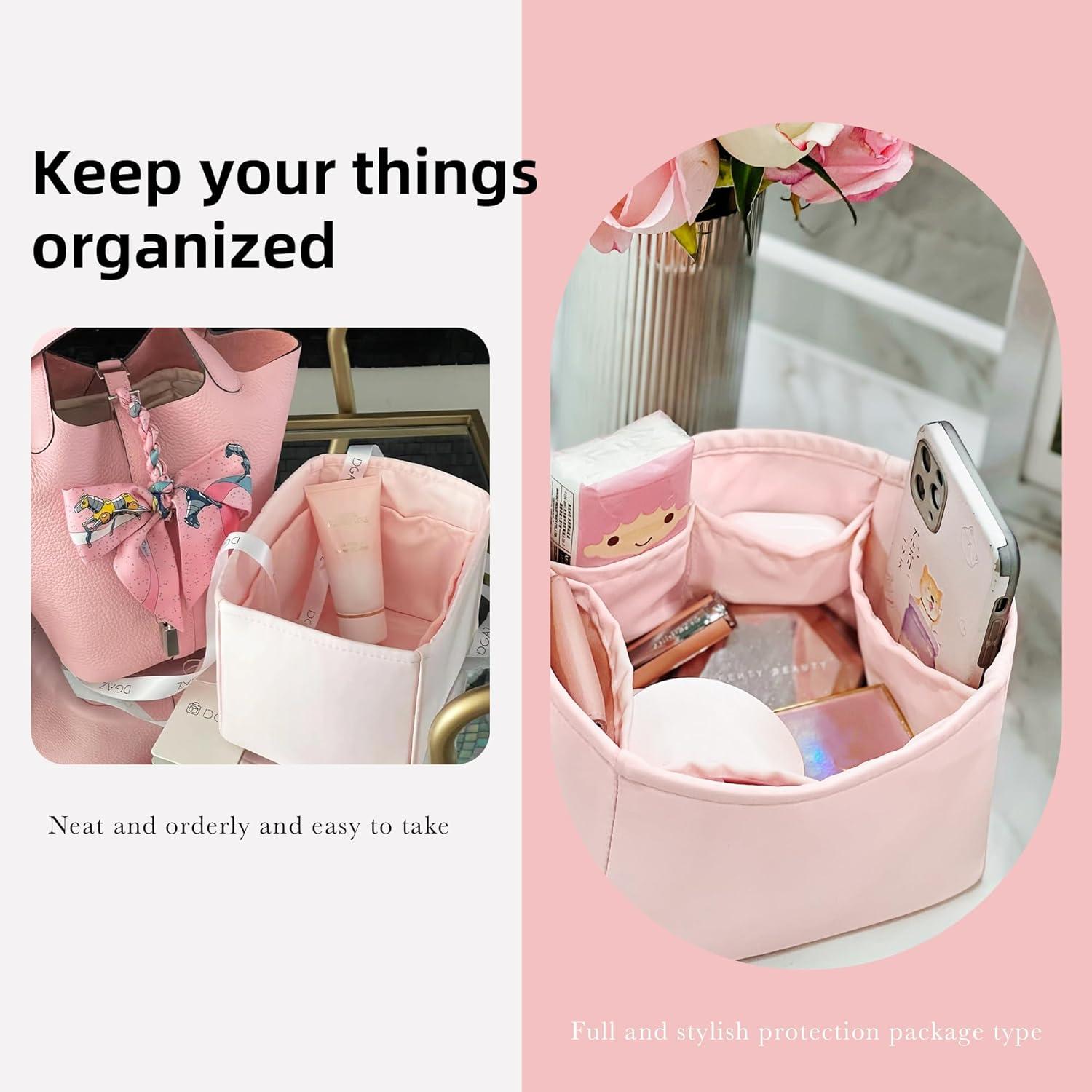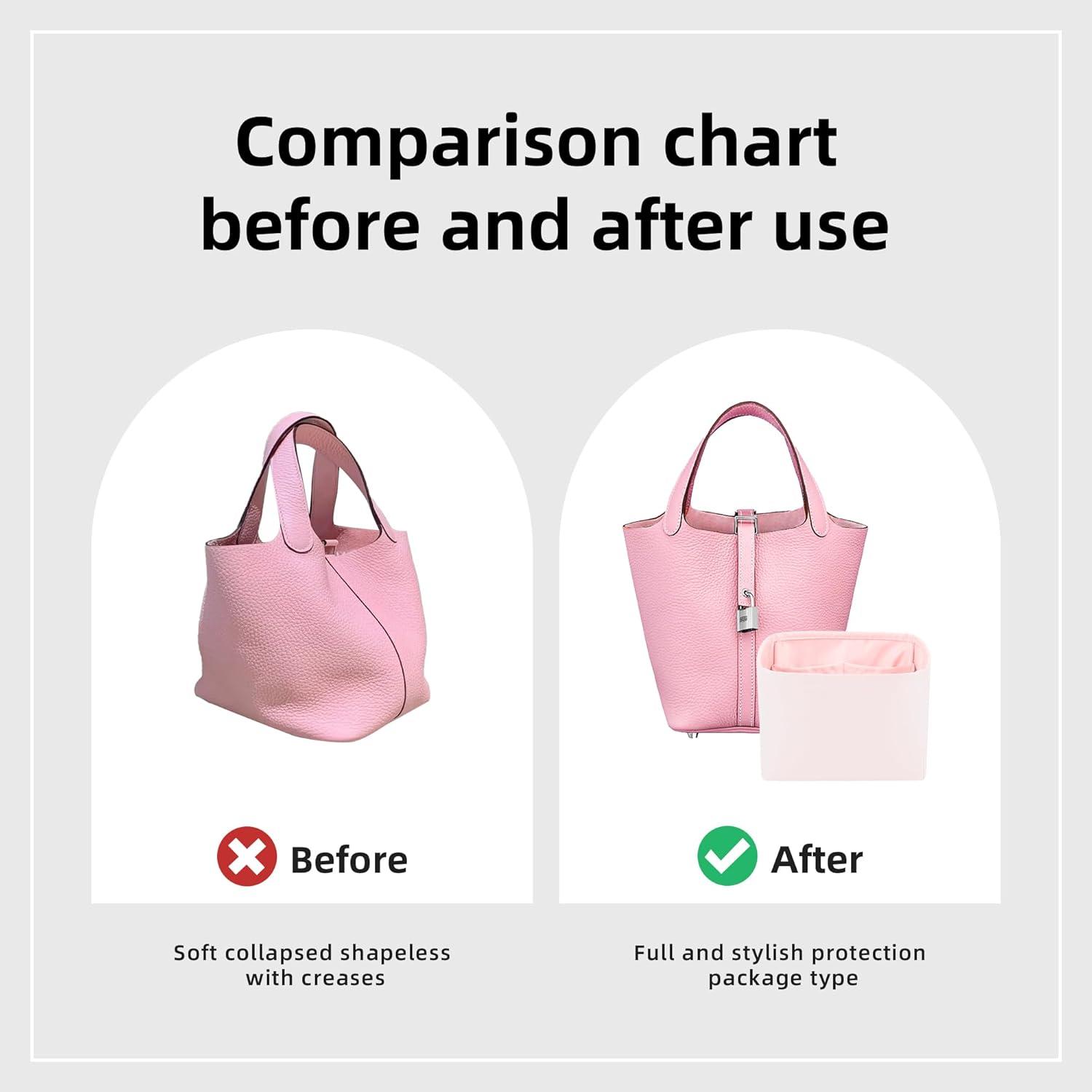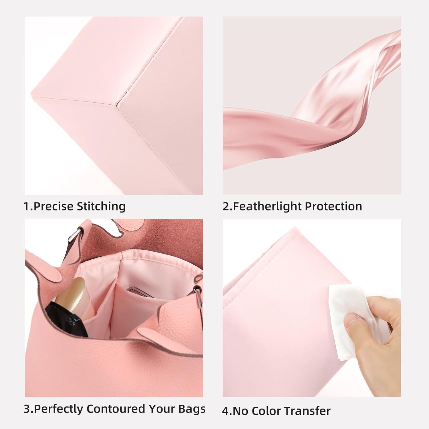DGAZ Purse Organizer Silky Smooth,Silk,Luxury Handbag Tote in Bag Shapers, Women- Fits picotin18/22Bags (Etoupe grey, PC18)(Pink)