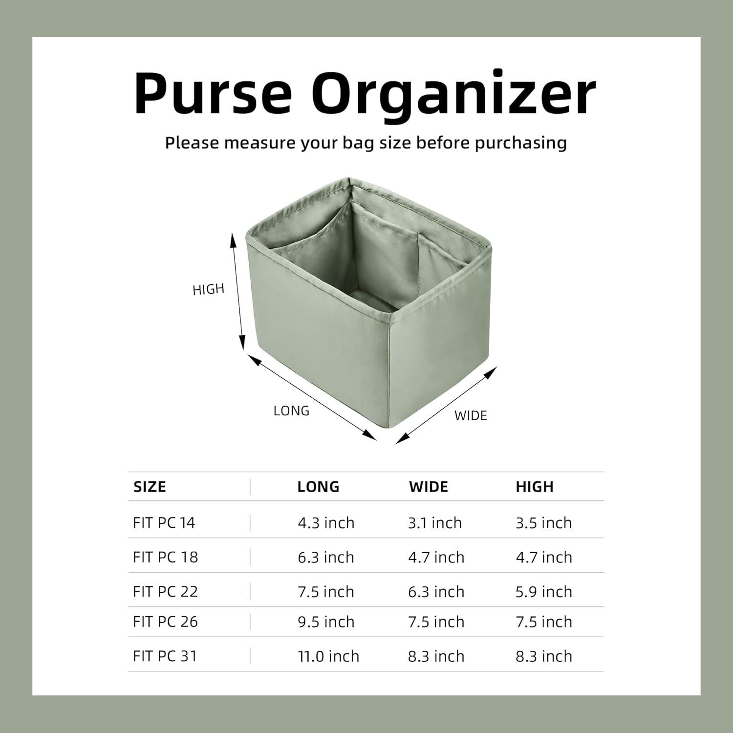 DGAZ Purse Organizer Silky Smooth,Silk,Luxury Handbag Tote in Bag Shapers, Women- Fits picotin18/22Bags (Etoupe grey, PC18)(Vert Criquet)