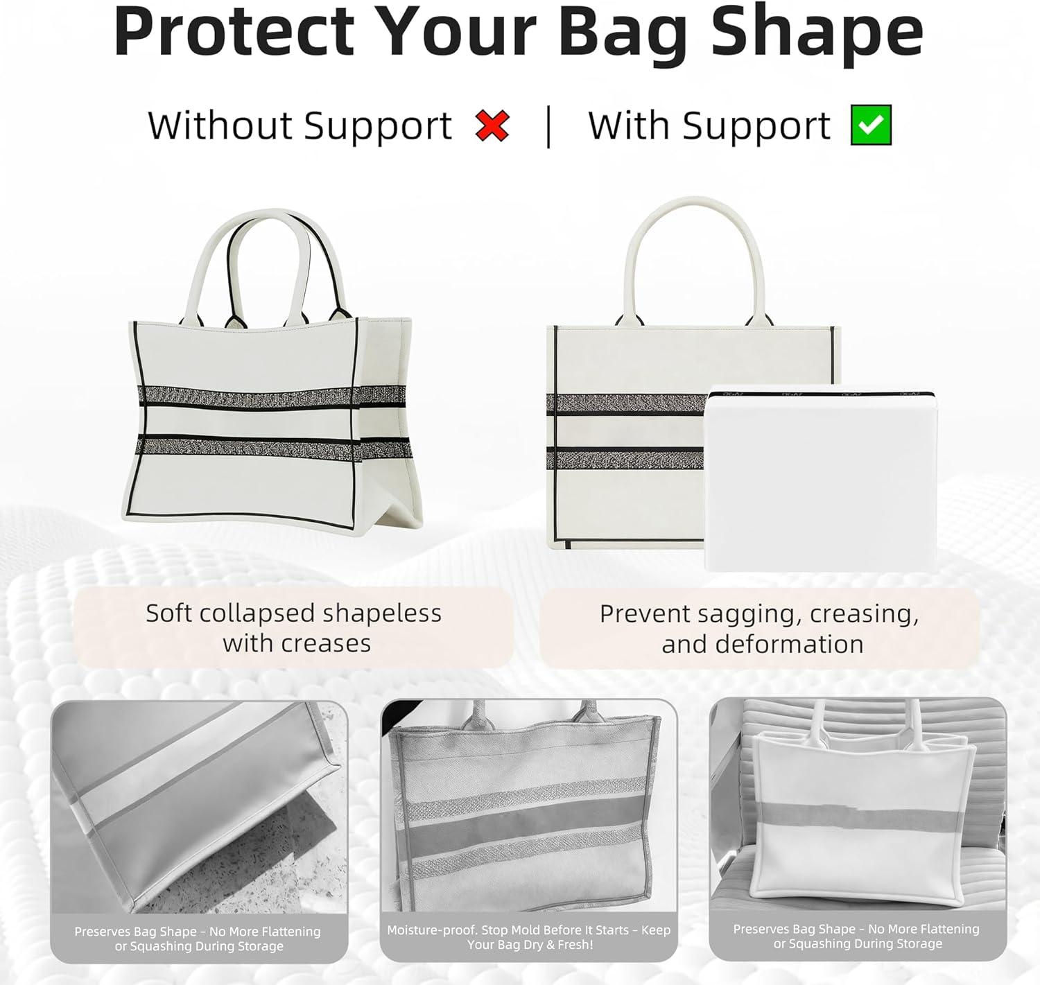 imageDGAZ Purse Pillow Insert for Dior Book Tote bags Memory Foam Silky Pillow Shaper for Luxury HandbagsWine RedMiniWhite