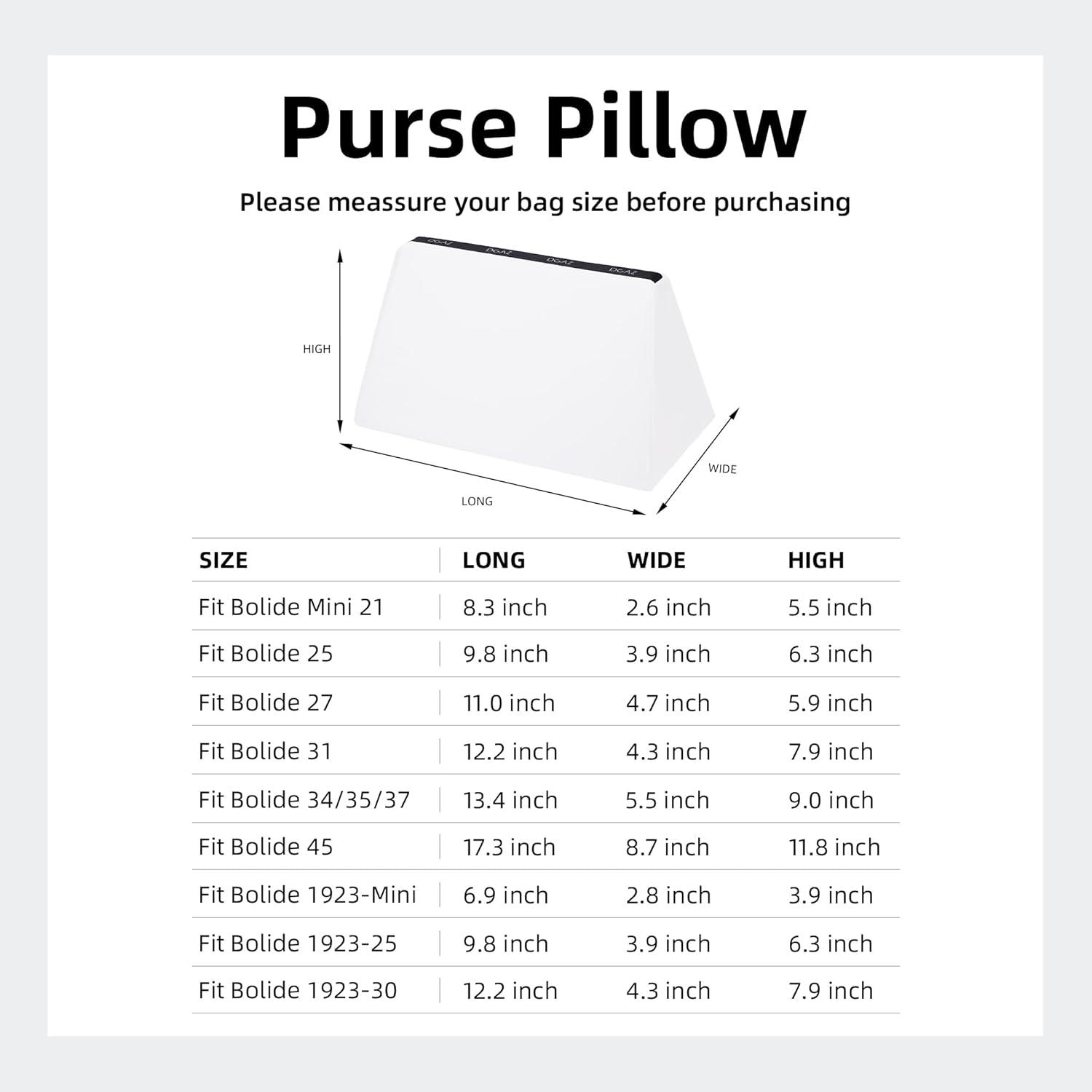 DGAZ Purse Pillow Shaper Insert for Bolide 1923mini/25/27/31/35 Bags, Silky Pillow Shaper for Luxury Handbags(Black,25)(White)