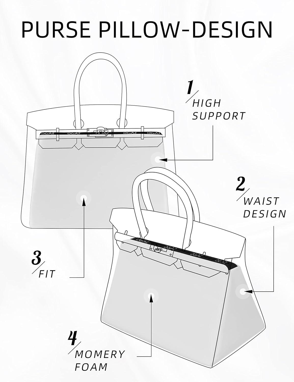 DGAZ Purse Pillow Shaper Insert,Luxury Handbag Tote Shapers, Memory Foam- Fits Birkin 25/30/35/40 Bag (White, BK25 Retourne)(White)