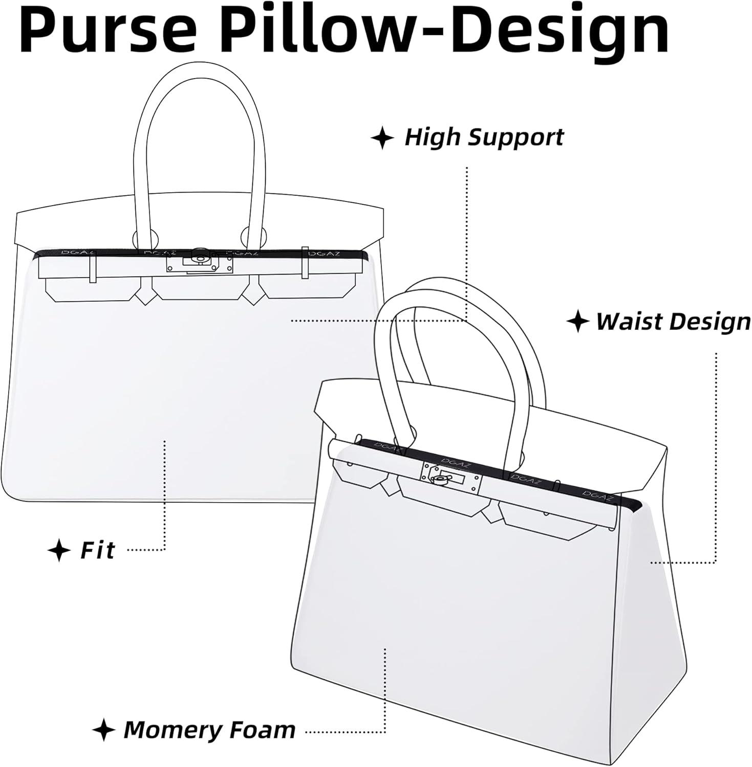 DGAZ Purse Pillow Shaper Insert,Luxury Handbag Tote Shapers, Memory Foam- Fits Birkin 25/30/35/40 Bag (White, BK25 Retourne)(Pink)