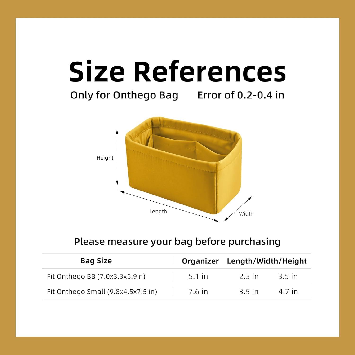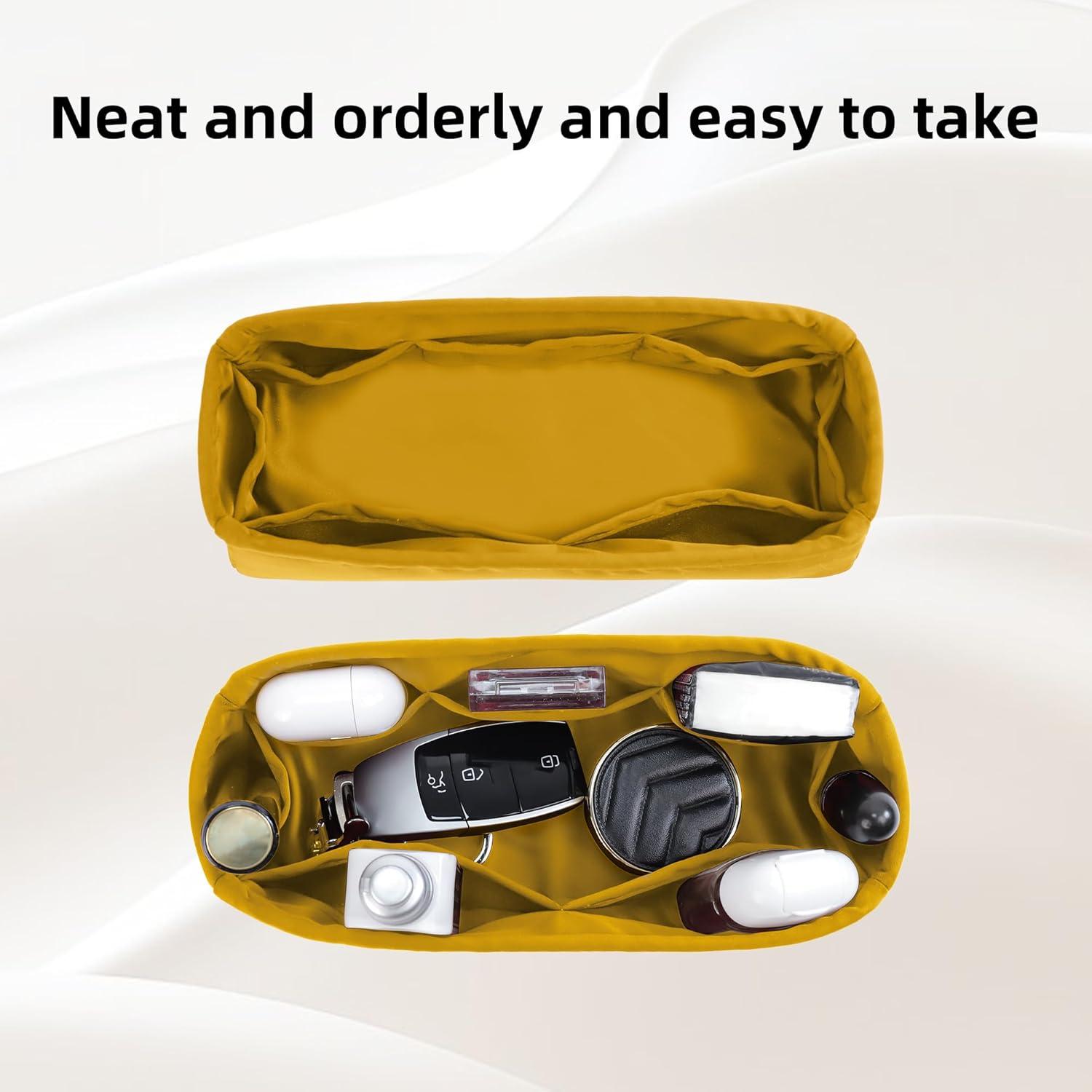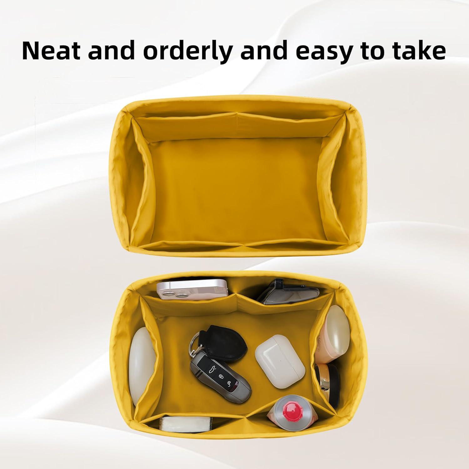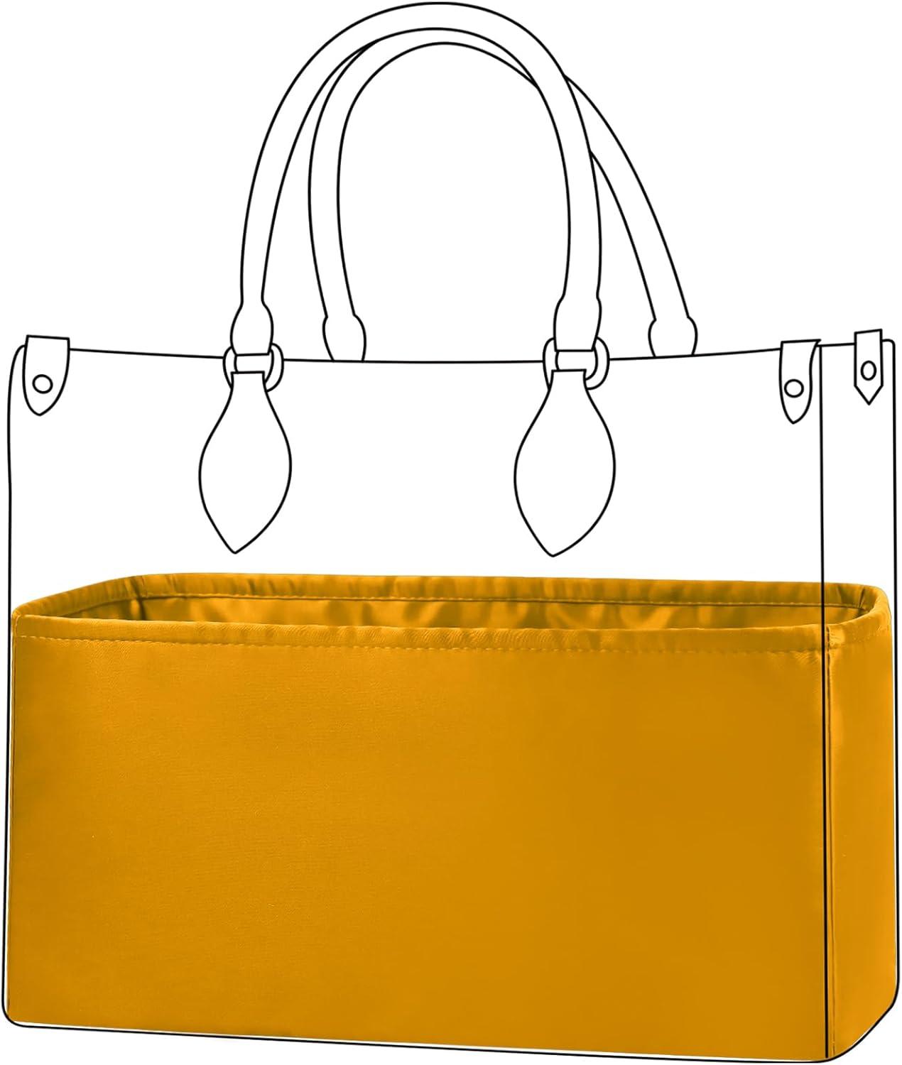 DGAZ Silk Handbag Organizer Insert Fits LV ONTHEGO bags,Silky Smooth Bag Organizer,Luxury Handbag & Tote Shaper(Black,BB)(Jaune amber)