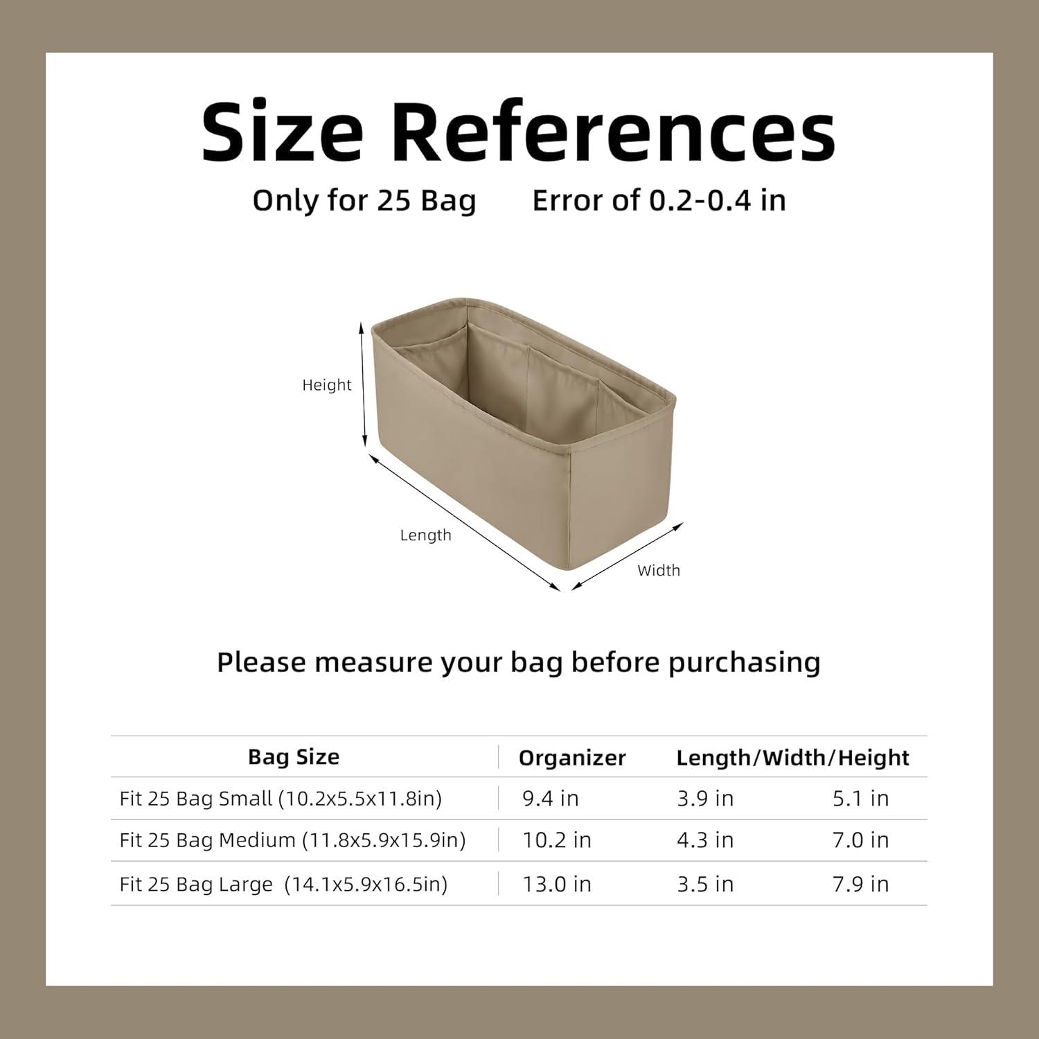 Purchase Notice: Please measure the internal dimensions of your handbag before purchasing, confirm the bag model, and then refer to the size chart for selection to avoid confusion caused by choosing the wrong size.