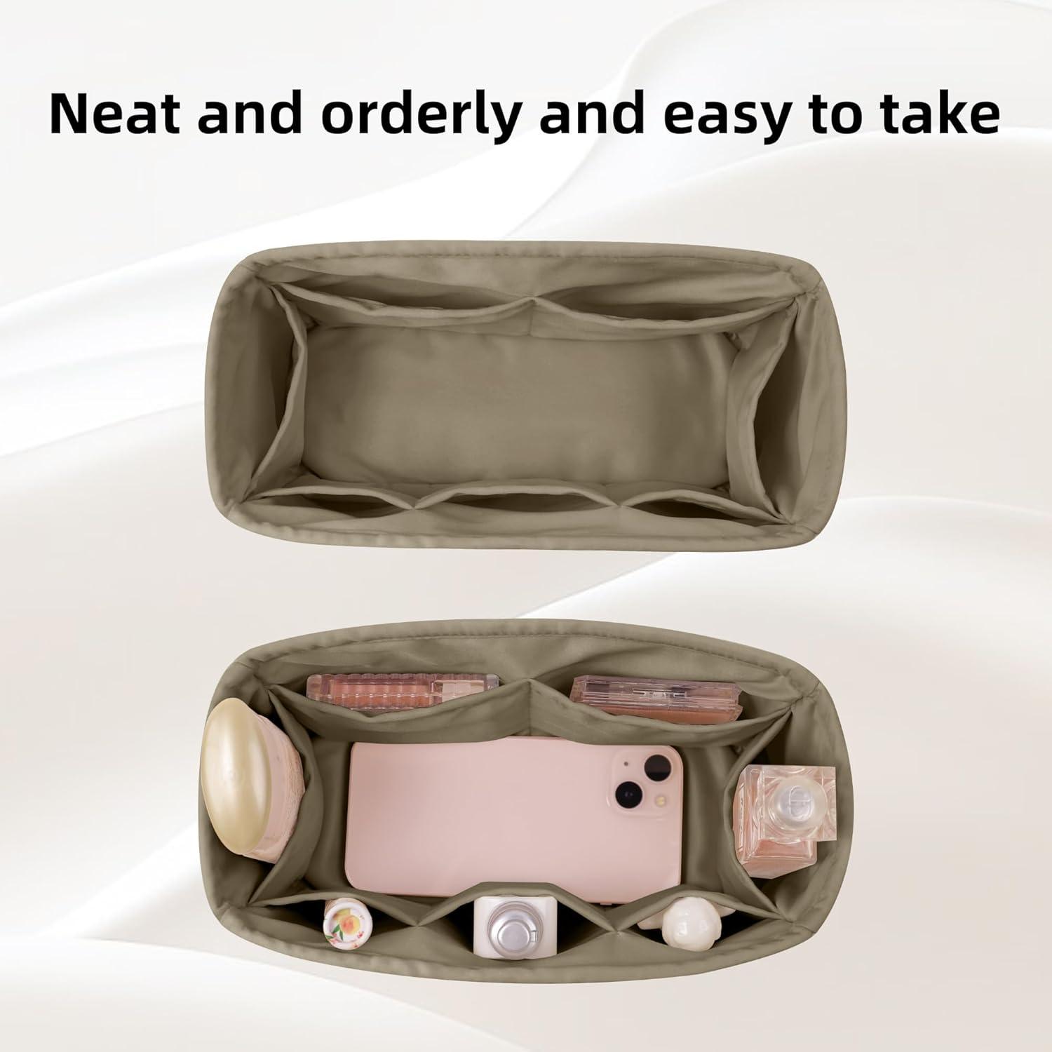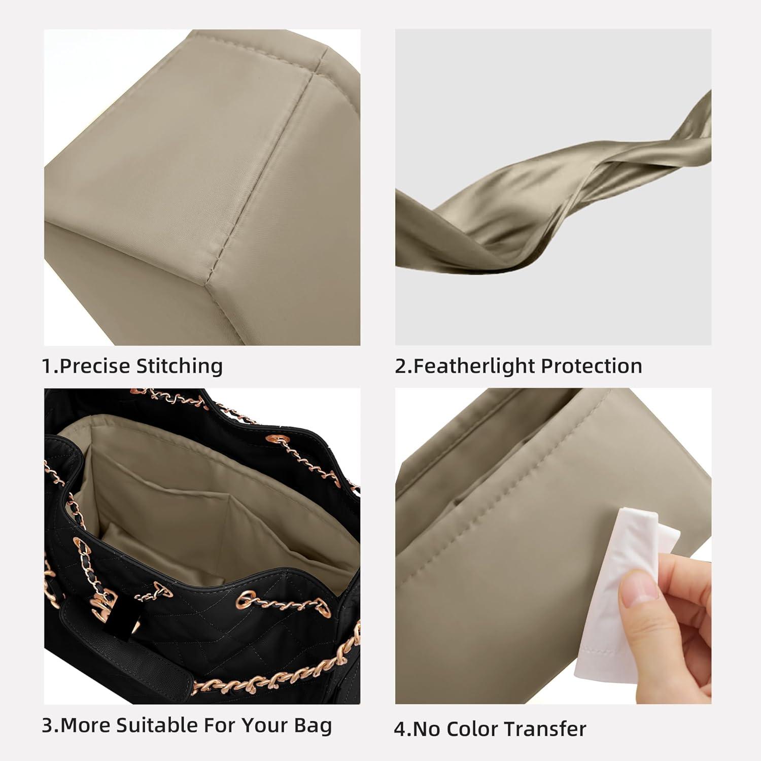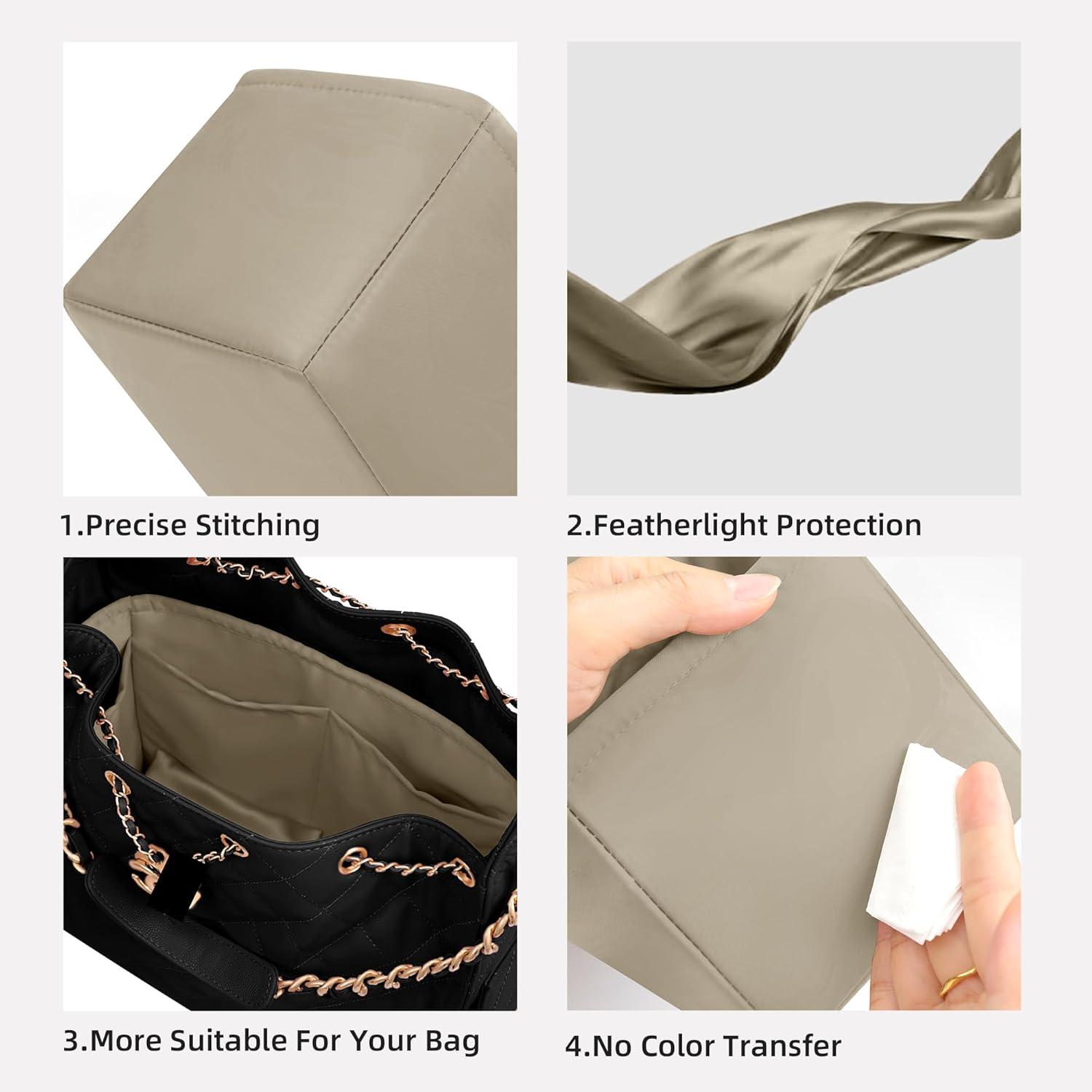 DGAZ Silk Purse Organizer Insert Fits Chanel 25 Handbags,Silky Smooth Bag Organizer,Luxury Handbag & Tote Shaper(Black,Small)(Gris Tourterelle)