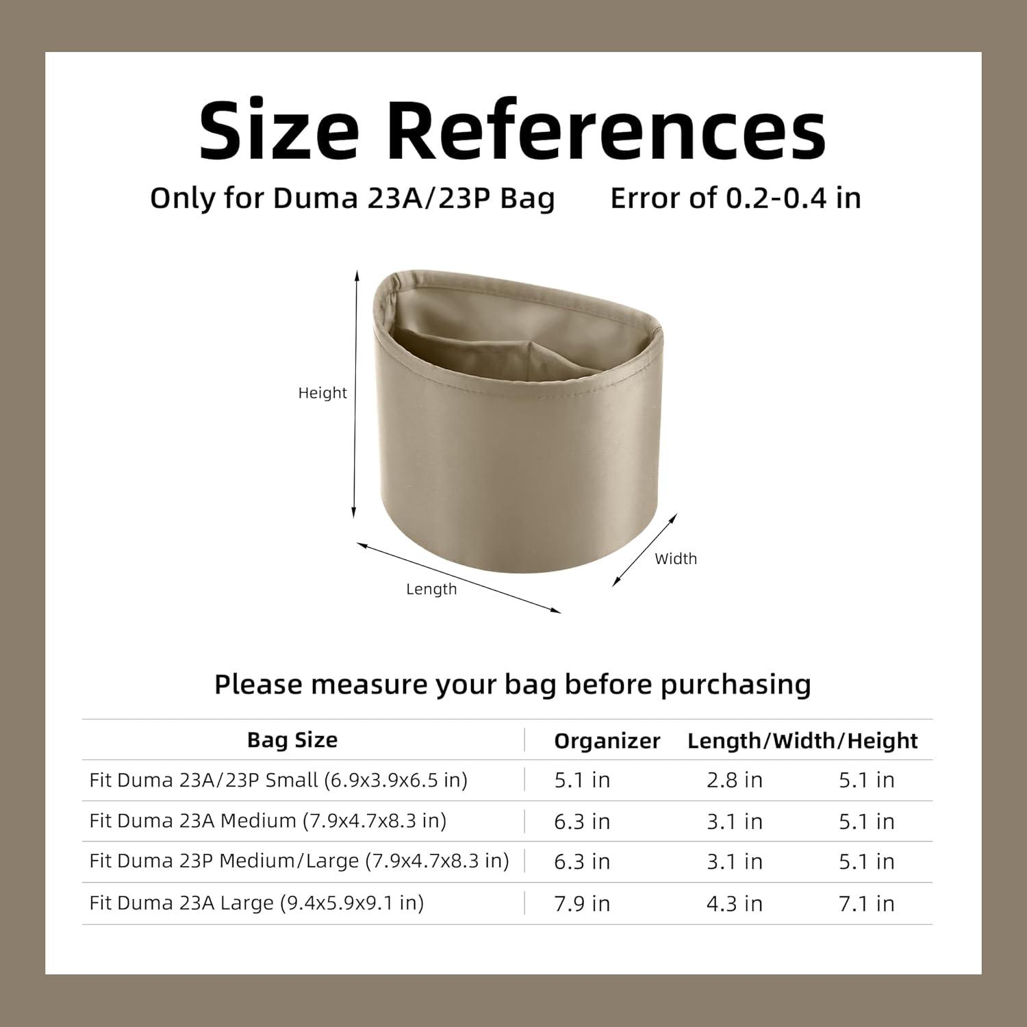 Purchase Notice: Please measure the internal dimensions of your handbag before purchasing, confirm the bag model, and then refer to the size chart for selection to avoid confusion caused by choosing the wrong size.