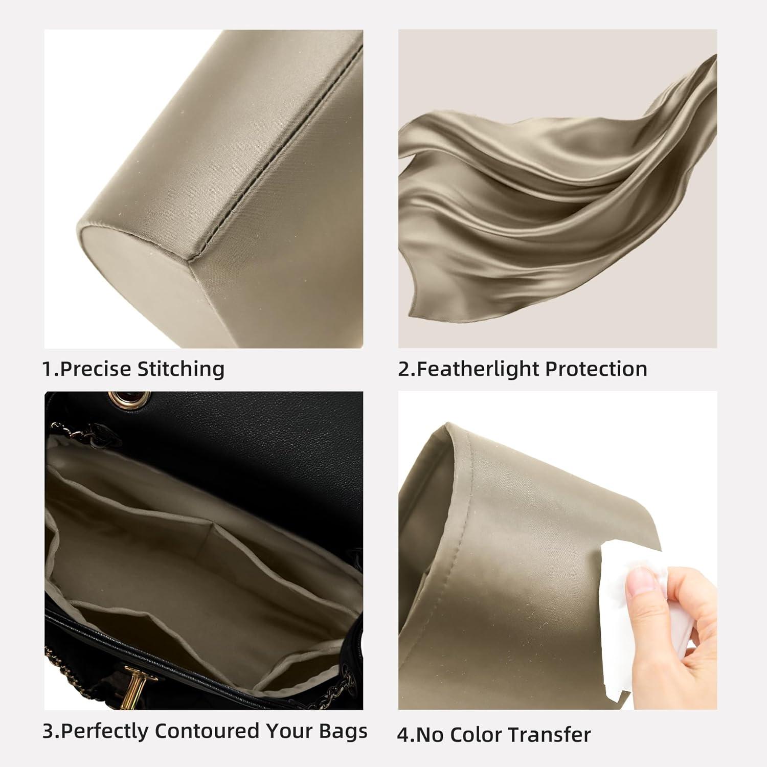 High-grade material: our handbag organizer is made of high-grade silk, silky feel, lightweight, soft and firm, satin bag organizer can easily support the bag and does not leave traces; precious bag is the need for a matching partner, out of communication more highlight the consistent internal and external noble.