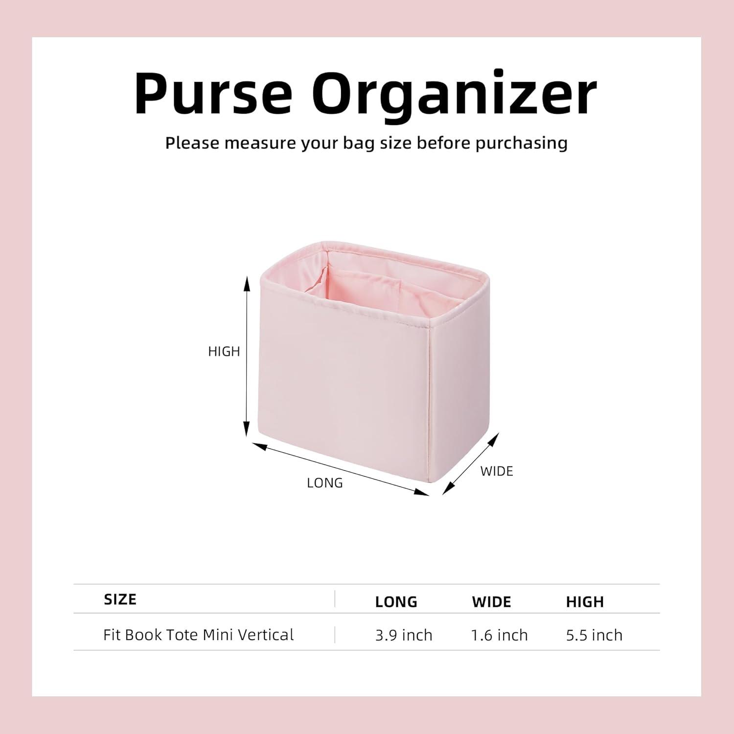 DGAZ Silk Purse Organizer Insert Fits Dior-Booktote Mini Vertical bags,Silky Smooth Bag Organizer,Luxury Handbag & Tote Shaper(Treasure blue)(Pink)