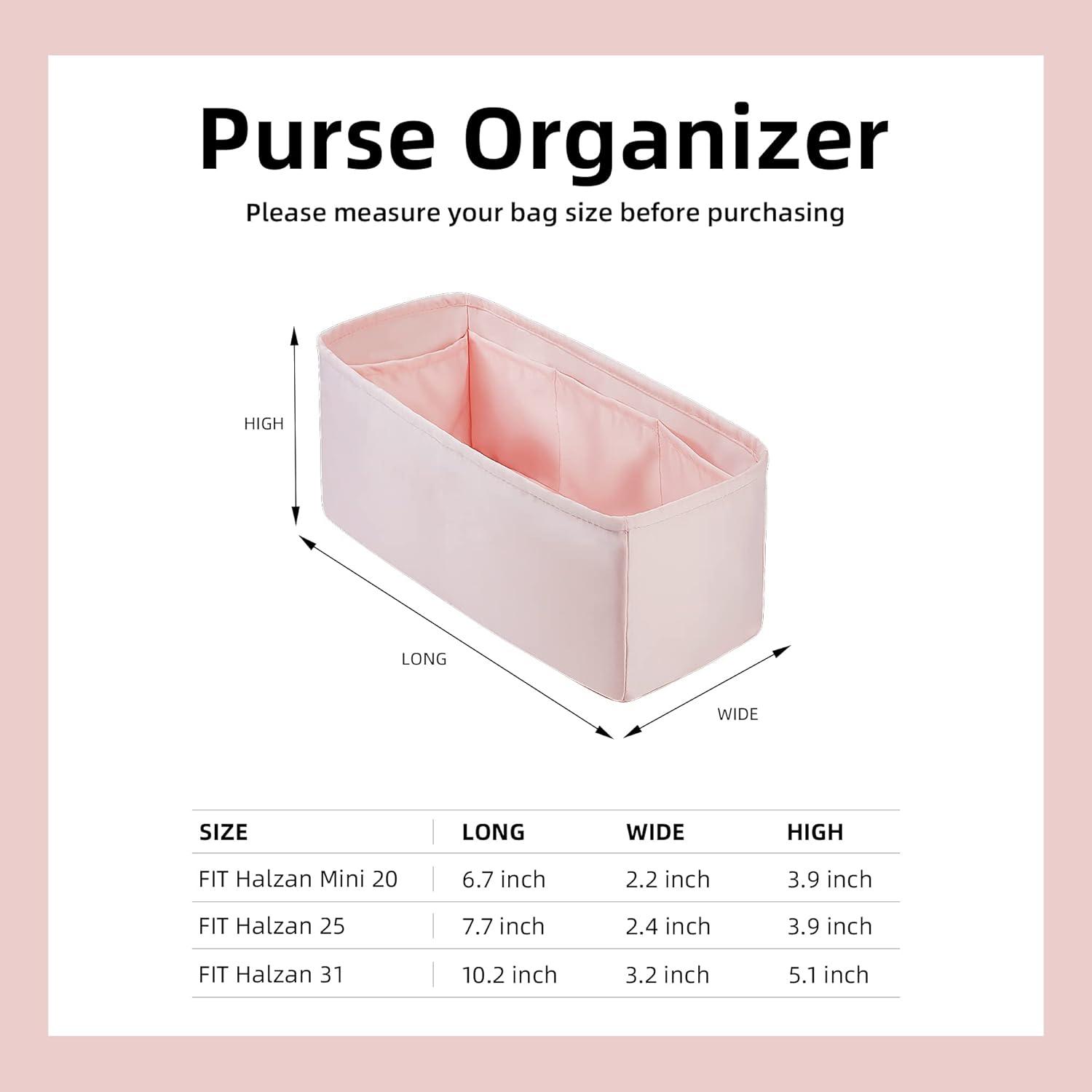 DGAZ Silk Purse Organizer Insert Fits Halzan mini20/25/31,Silky Smooth Bag Organizer,Luxury Handbag & Tote Shaper(Craie,Halzan mini20)(Pink)