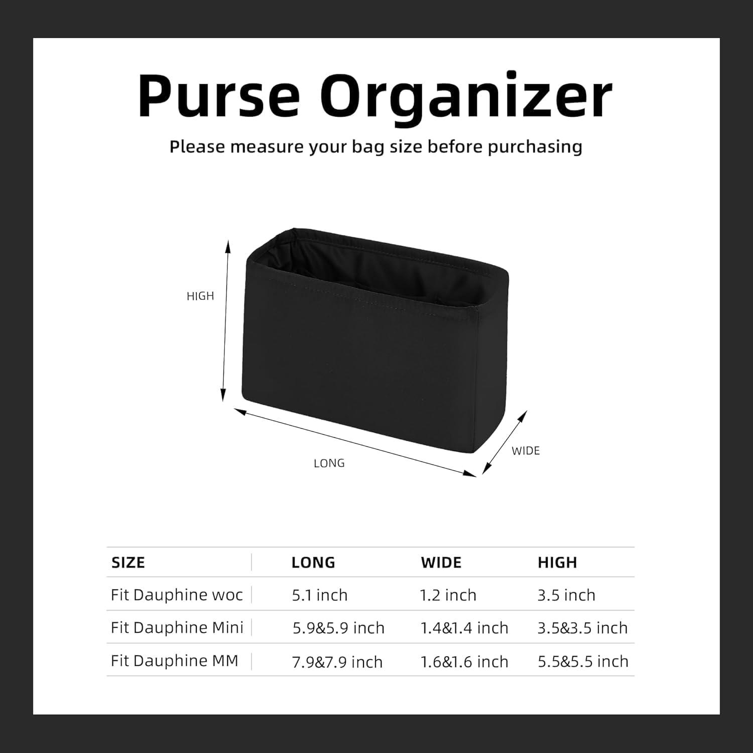 DGAZ Silk Purse Organizer Insert Fits LV Dauphine bags,Silky Smooth Bag Organizer,Luxury Handbag & Tote Shaper(Black,Dauphine WOC)(Craie)