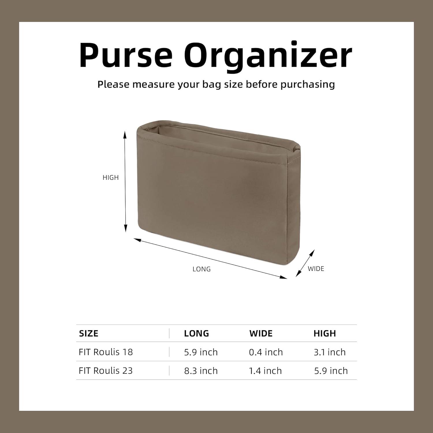 DGAZ Silk Purse Organizer Insert Fits Roulis 18/23 Bag,Silky Smooth Bag Organizer,Luxury Handbag & Tote Shaper(Black,Roulis18)(Etoupe grey)