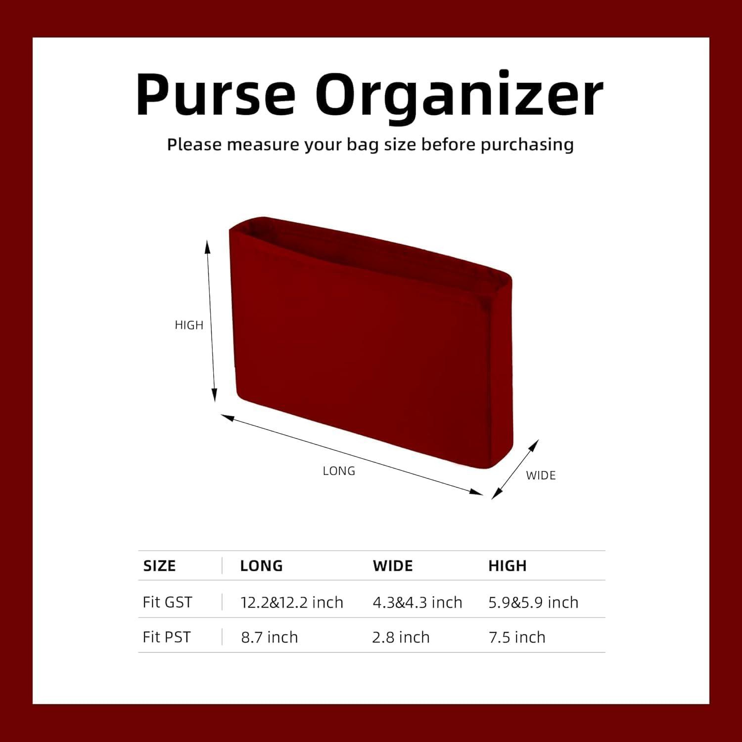 DGAZ Silk Purse Organizer Insert For Chanel GST/PST bags,Silky Smooth Bag Organizer,Luxury Handbag & Tote Shaper(Black,PST)(Rouge Grenat)