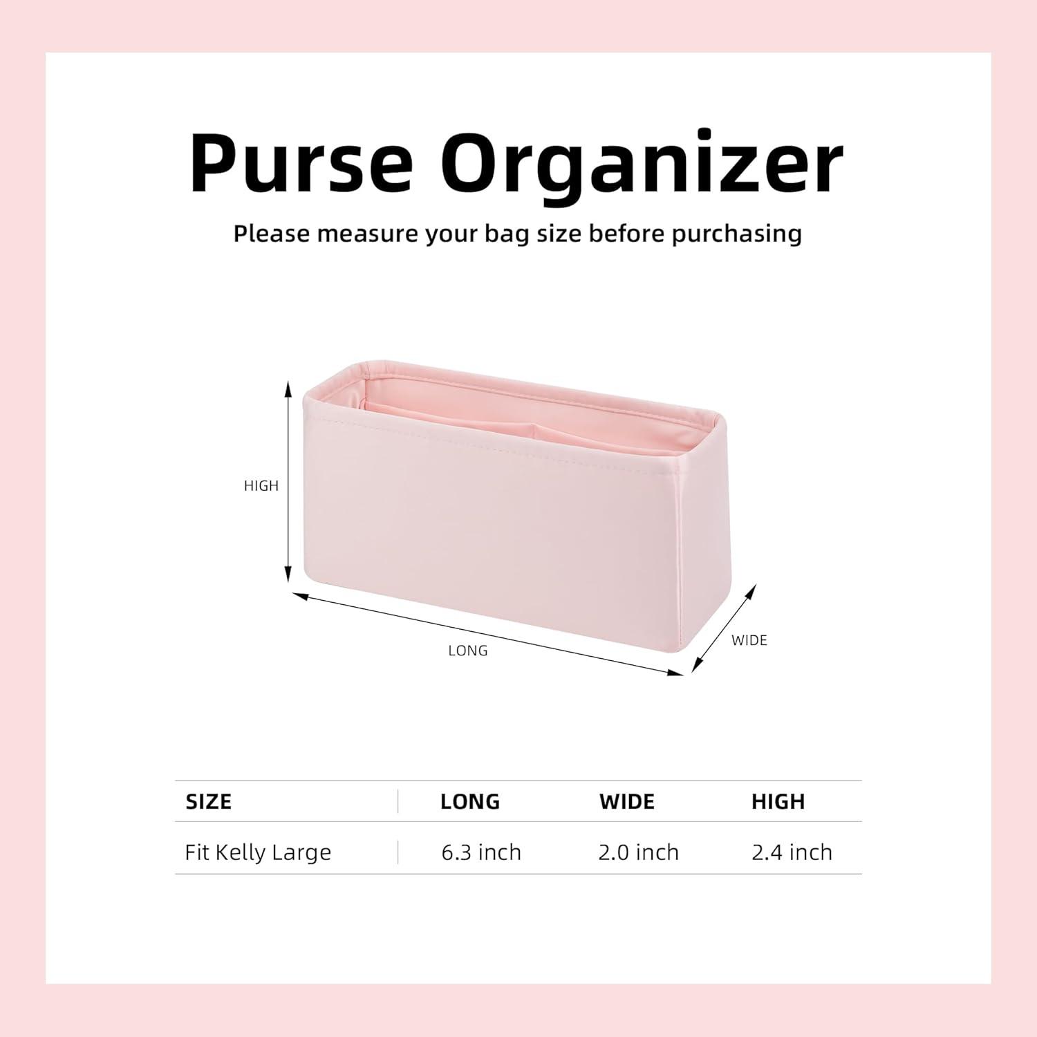 DGAZ Silk Purse Organizer Insert For Chanel Kelly bags,Silky Smooth Bag Organizer,Luxury Handbag & Tote Shaper(Black,Large)(Pink)