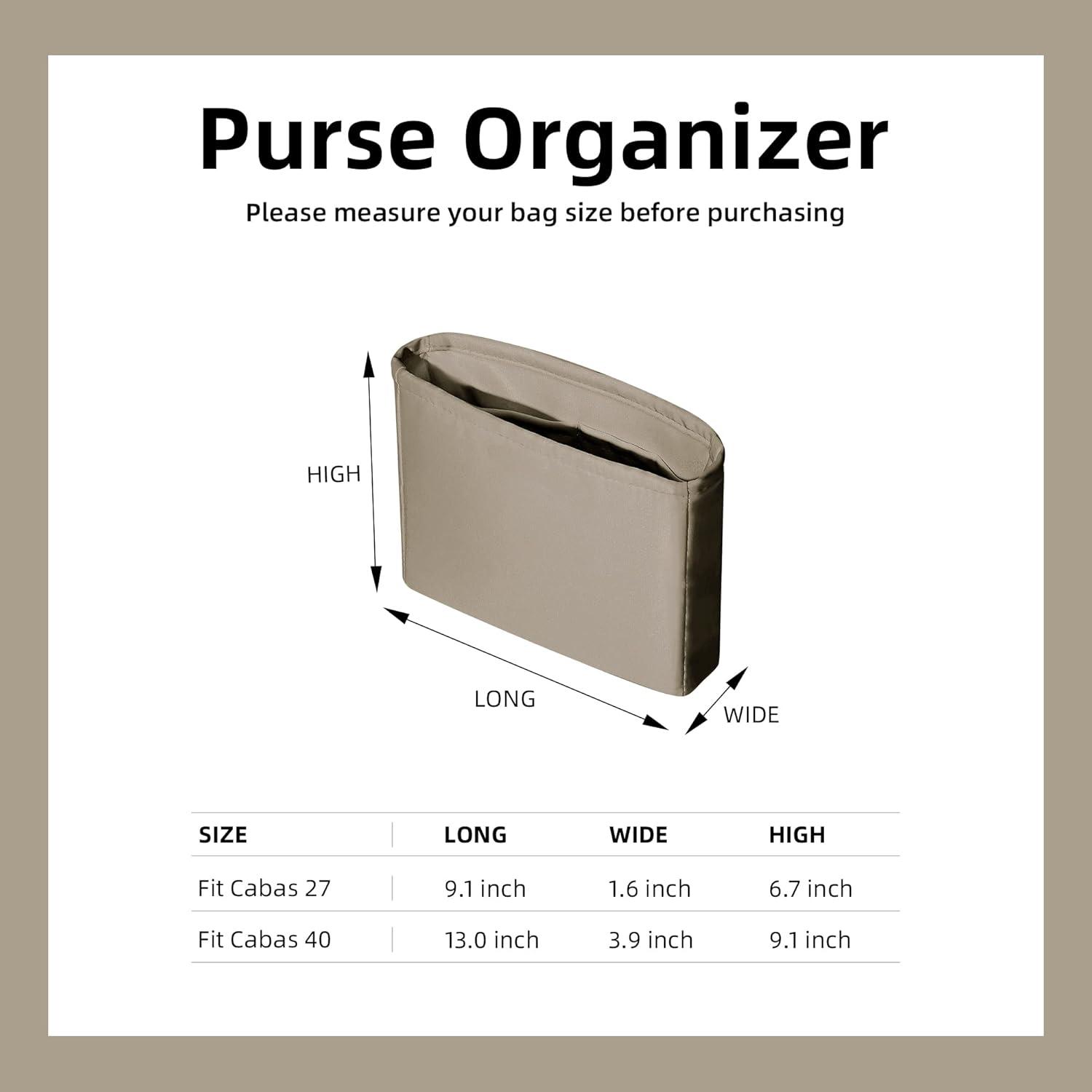DGAZ Silk Purse Organizer Insert For Hermes Cabas 27/40 Bags, Luxury Handbag & Tote Organizer, Simplicity bag organizer(Black,Cabas-27)(Cris tourterelle)