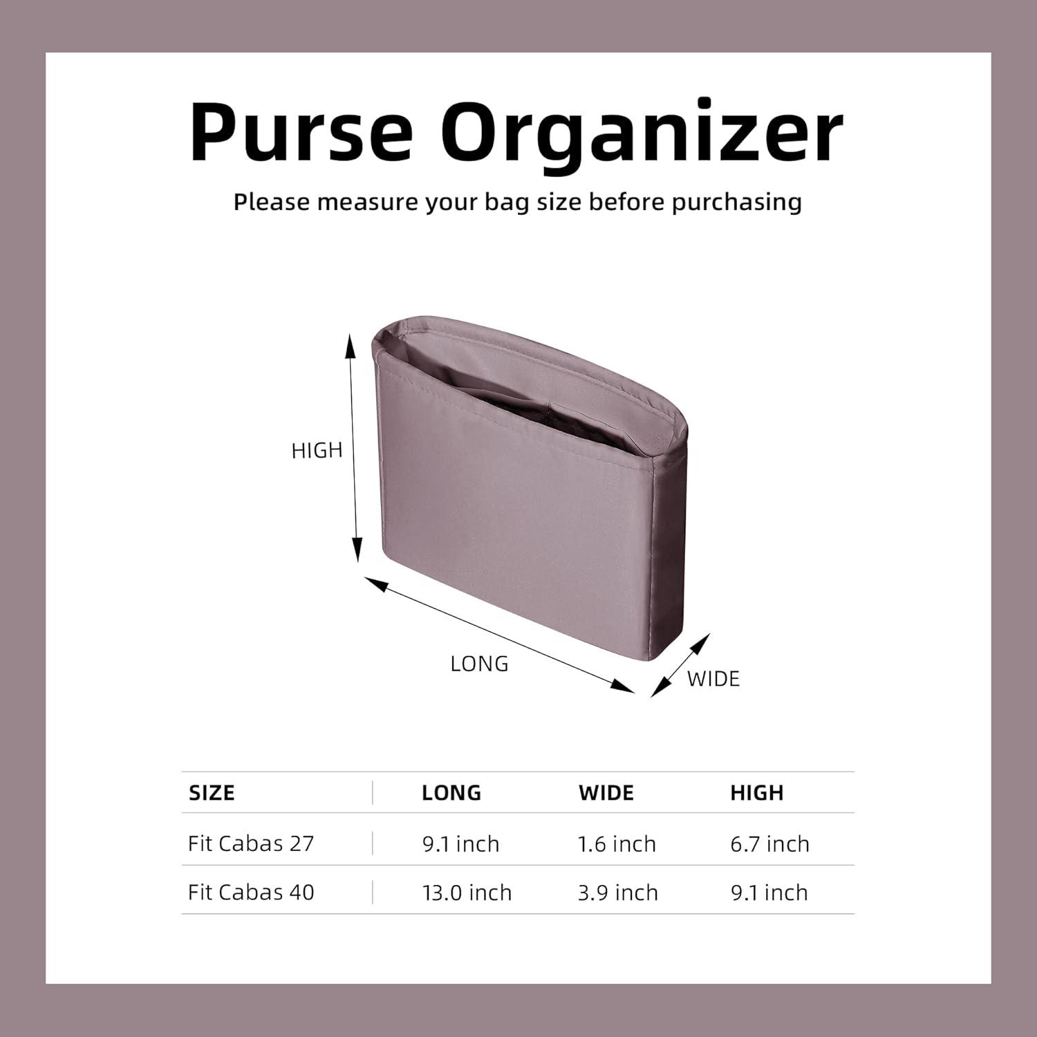 DGAZ Silk Purse Organizer Insert For Hermes Cabas 27/40 Bags, Luxury Handbag & Tote Organizer, Simplicity bag organizer(Black,Cabas-27)(Konjac Purple)
