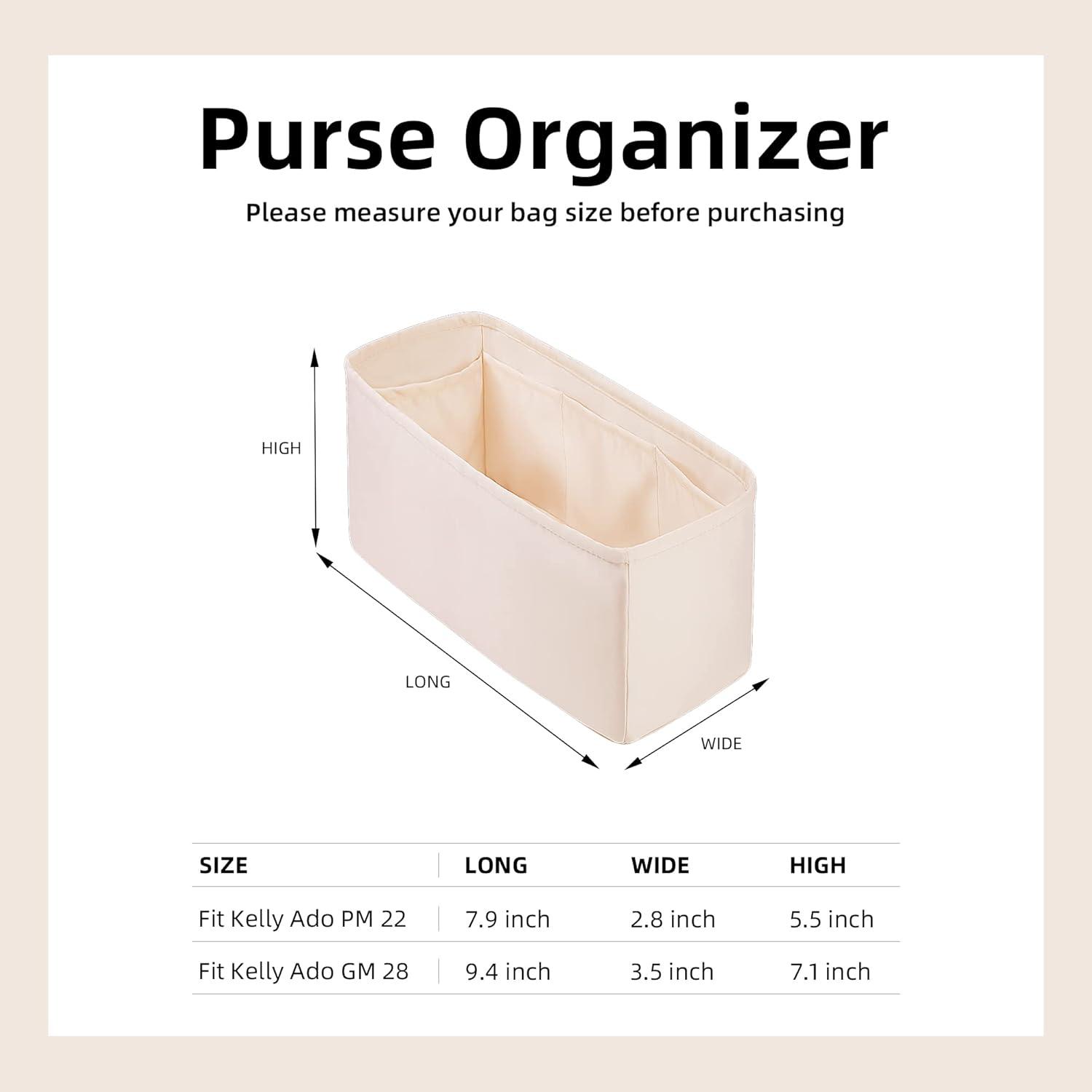 DGAZ Silk Purse Organizer Insert For Hermes Kelly Ado PM/GM bag,Silky Smooth Bag Organizer,Luxury Handbag & Tote Shaper(Craie,PM)(Custom)