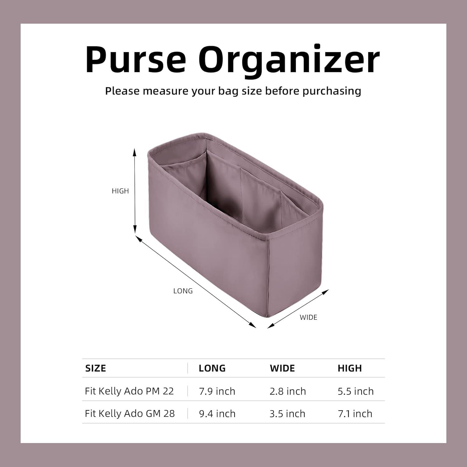 DGAZ Silk Purse Organizer Insert For Hermes Kelly Ado PM/GM bag,Silky Smooth Bag Organizer,Luxury Handbag & Tote Shaper(Craie,PM)(Konjac purple)