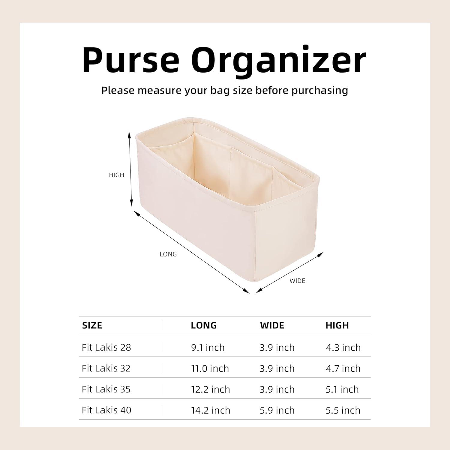 DGAZ Silk Purse Organizer Insert For Hermes Lakis 28/32/35/40 bag,Silky Smooth Bag Organizer,Luxury Handbag & Tote Shaper(Gris tourterelle,28)(Craie)