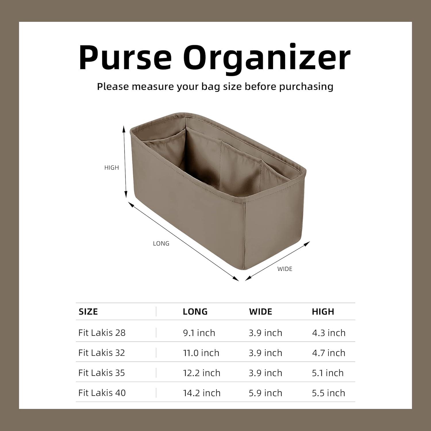 DGAZ Silk Purse Organizer Insert For Hermes Lakis 28/32/35/40 bag,Silky Smooth Bag Organizer,Luxury Handbag & Tote Shaper(Gris tourterelle,28)(Etoupe grey)